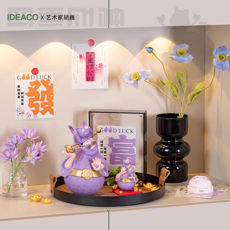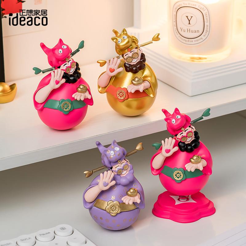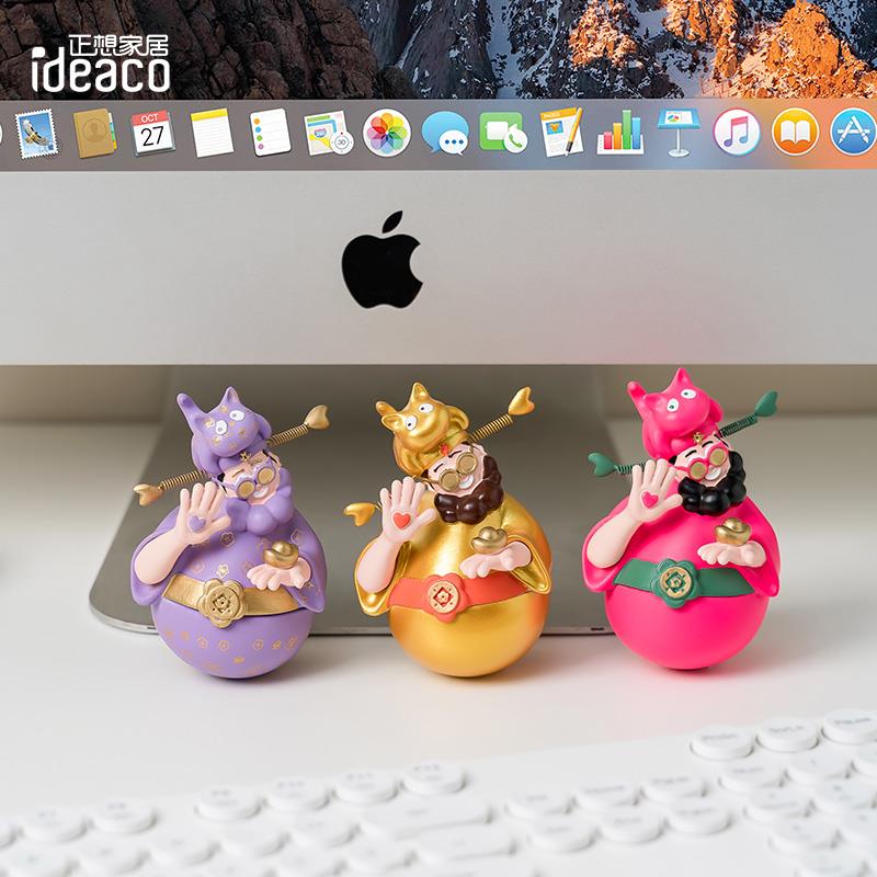 ideaco国潮四喜财神爷不倒翁小摆件工位装饰办公桌面招财模型礼物
