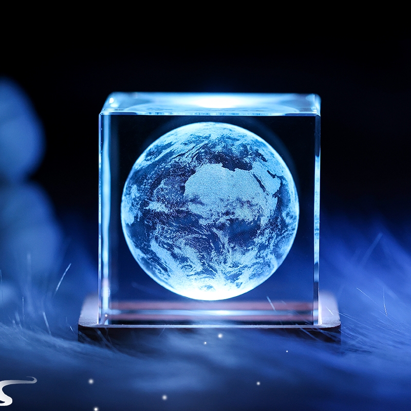 水晶地球月球模型发光装饰镇纸摆件送老师同学朋友六一儿童节礼物