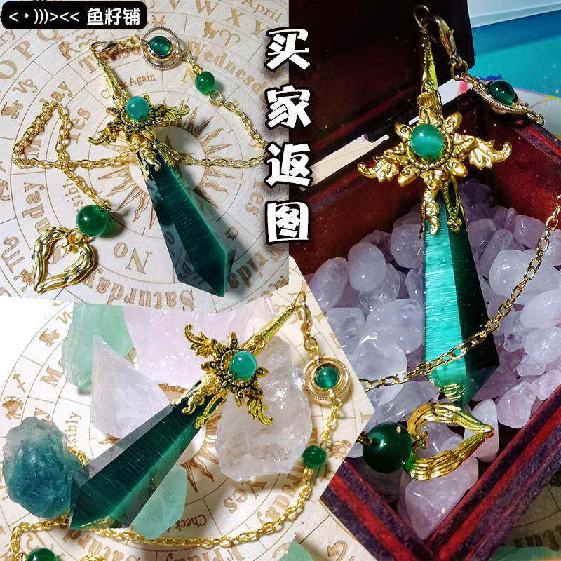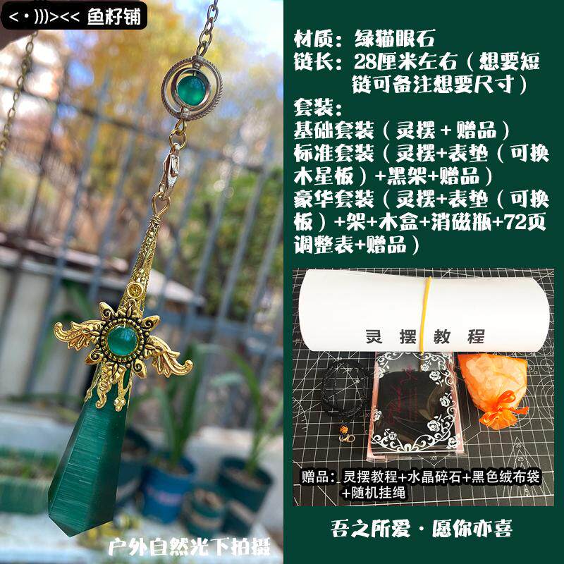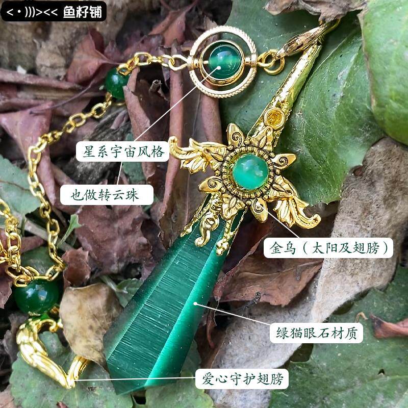 鱼籽铺绿猫眼灵摆手工项链金乌元素吊坠森系深绿色翅膀送佩戴挂绳