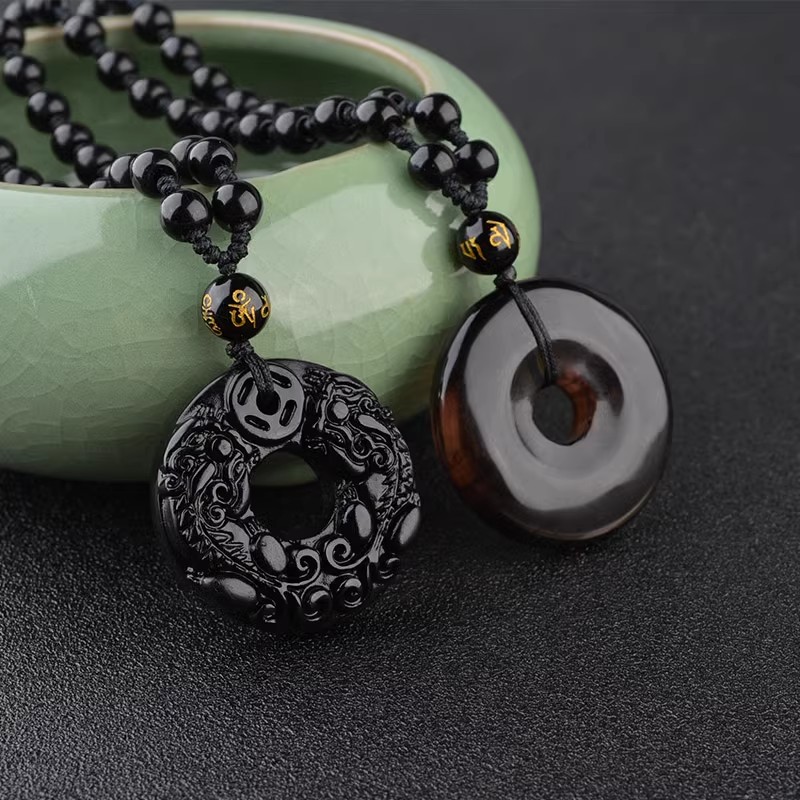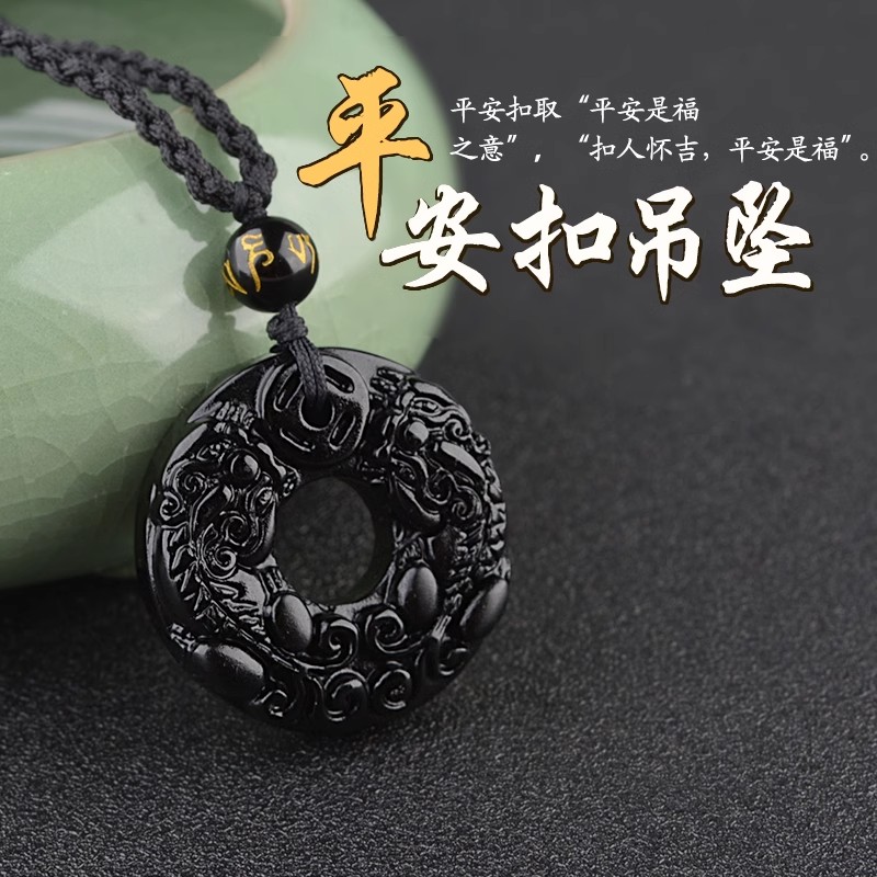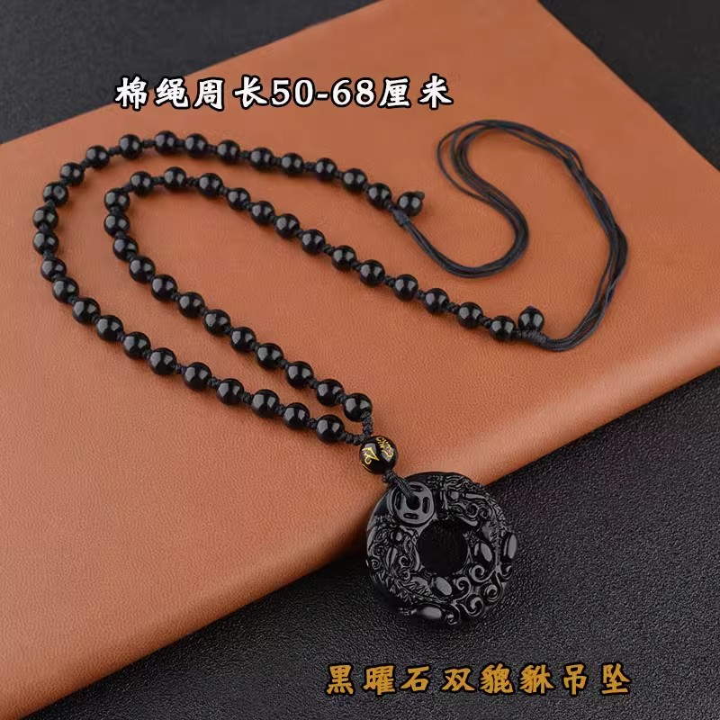 天然黑曜石吊坠男女款本命年貔貅吊坠招财转运正品水晶平安扣项链
