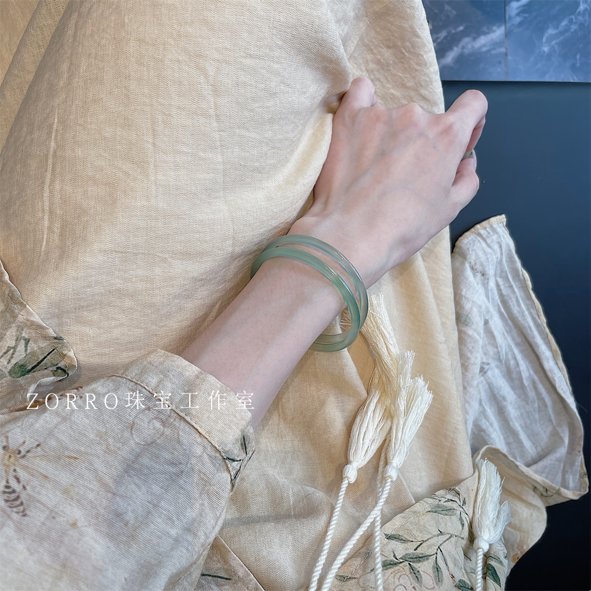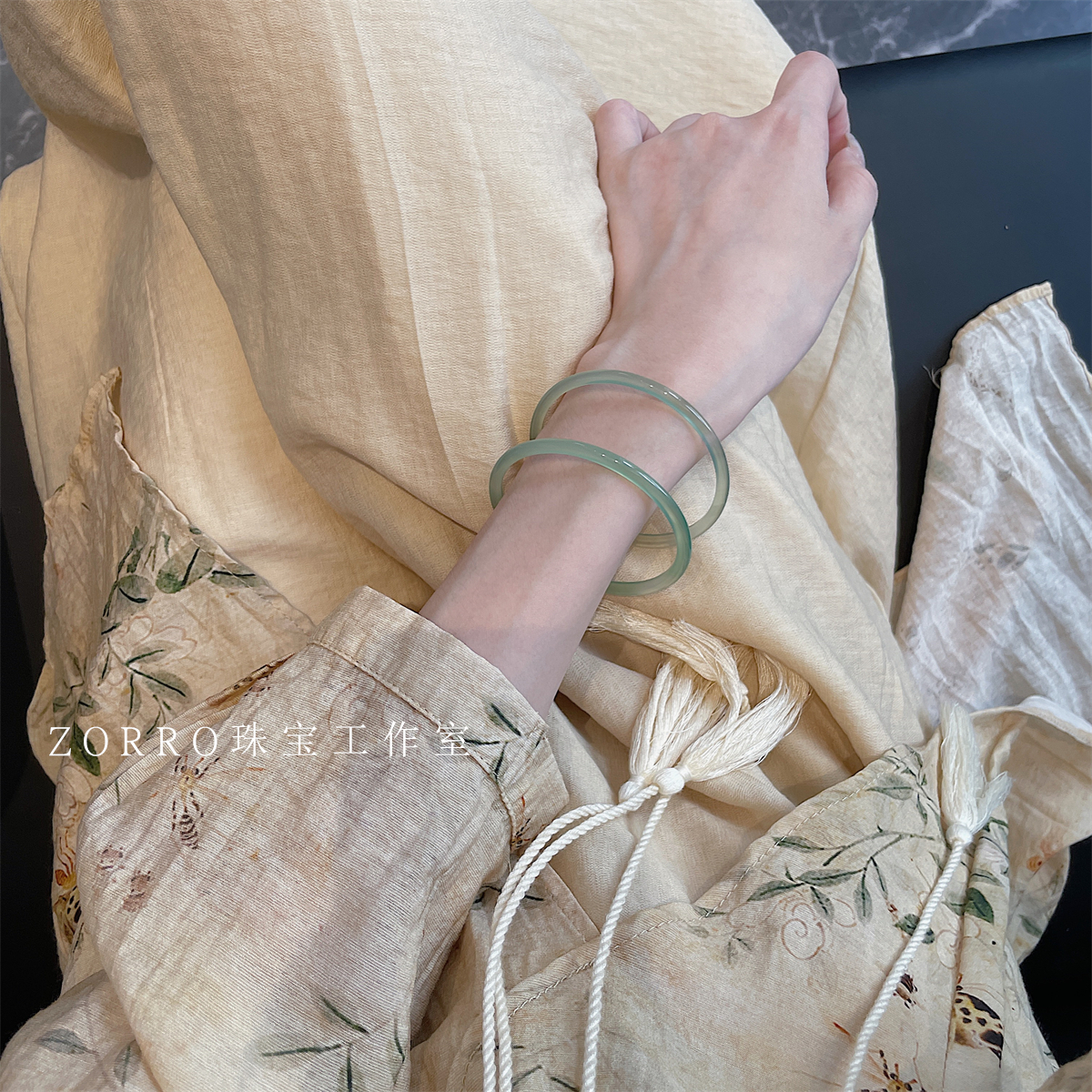 油青冰种翡翠玉髓古风国风新中式叮当镯绿色细圆条手镯女玛瑙一对