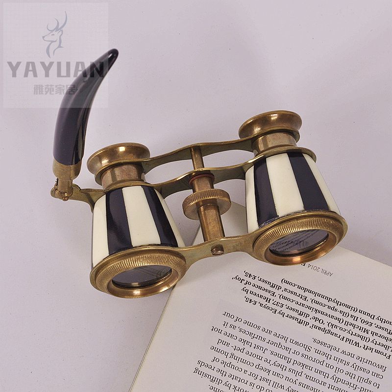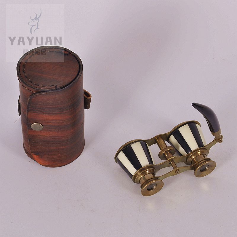 印度进口手持复古双筒黄铜望远镜西洋古董摆件电影道具软装看演出
