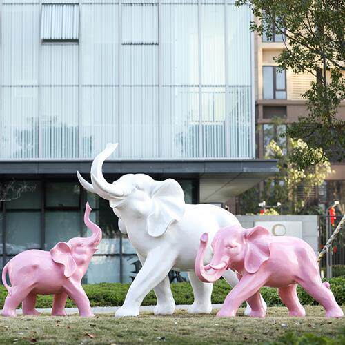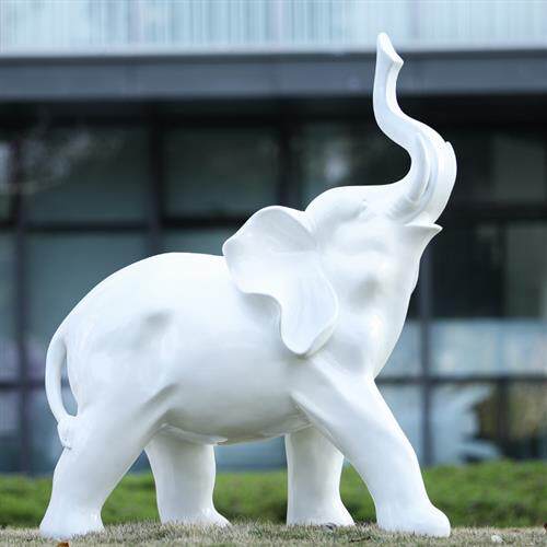 户外园林景观雕塑玻璃钢白色卡通大象摆件庭院商场售楼处美陈装饰