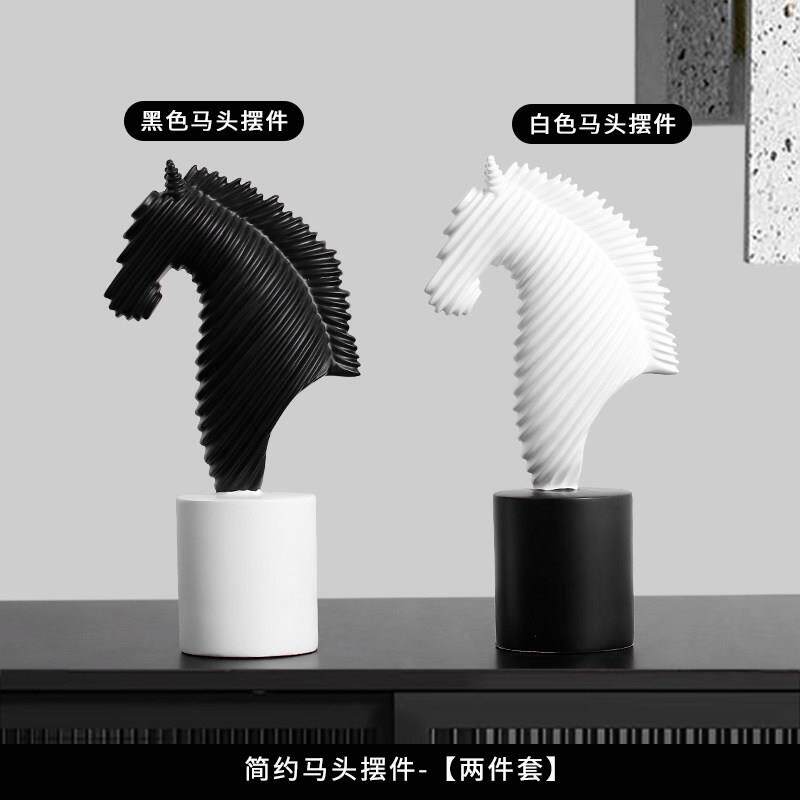抽象艺术马头饰品黑色和白色无障碍豪华现代高端入口客厅,书房样
