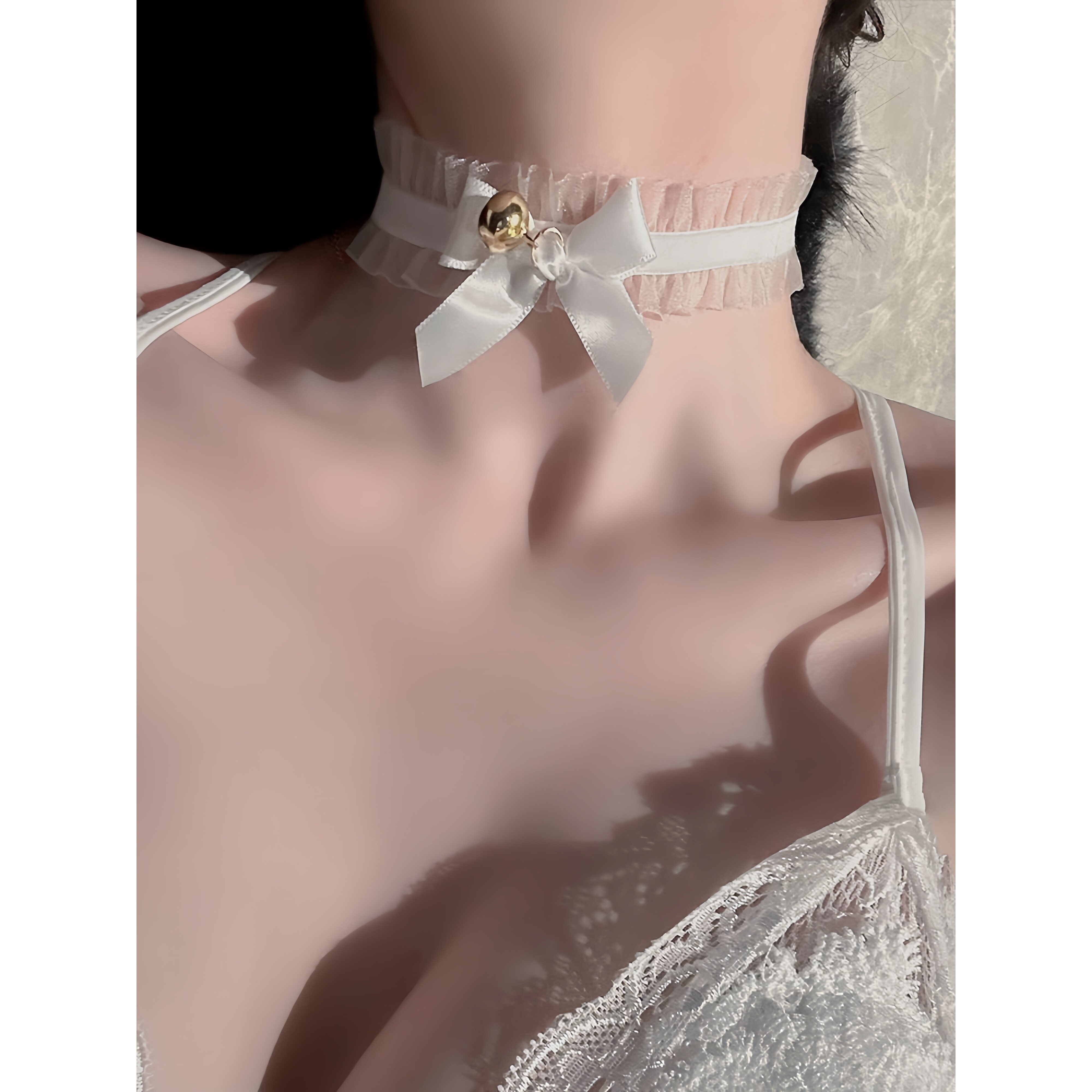 猫系女仆白色蕾丝蝴蝶结小铃铛项链女脖choker锁骨链配饰颈带项圈