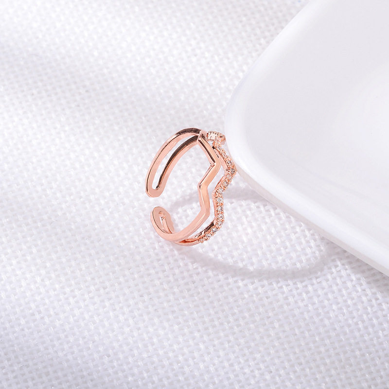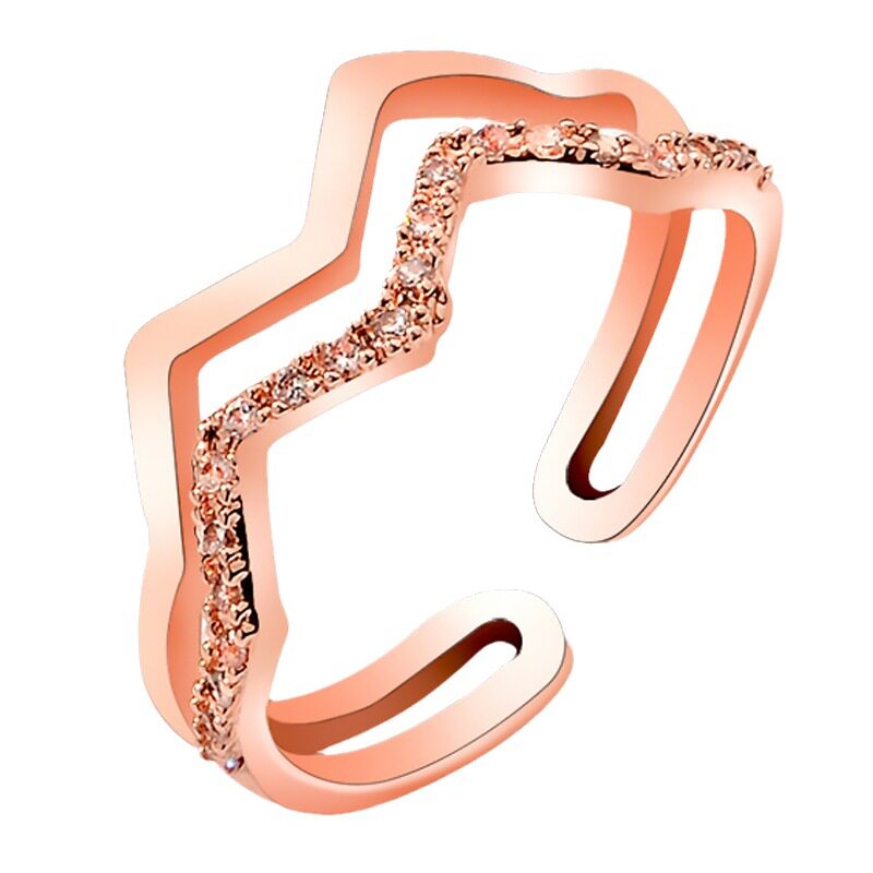 欧美新款手饰 个性双层波浪指环女 时尚潮人铜镶锆石开口戒指