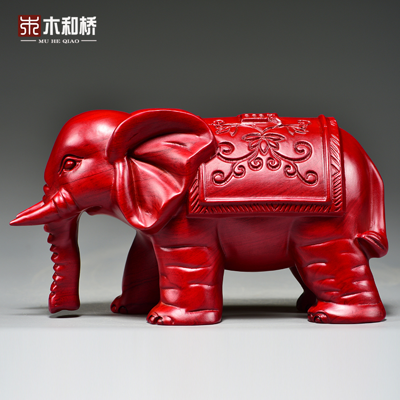 红色木雕吸水象摆件实木质一对玄关客厅电视柜P装饰工艺品乔迁送