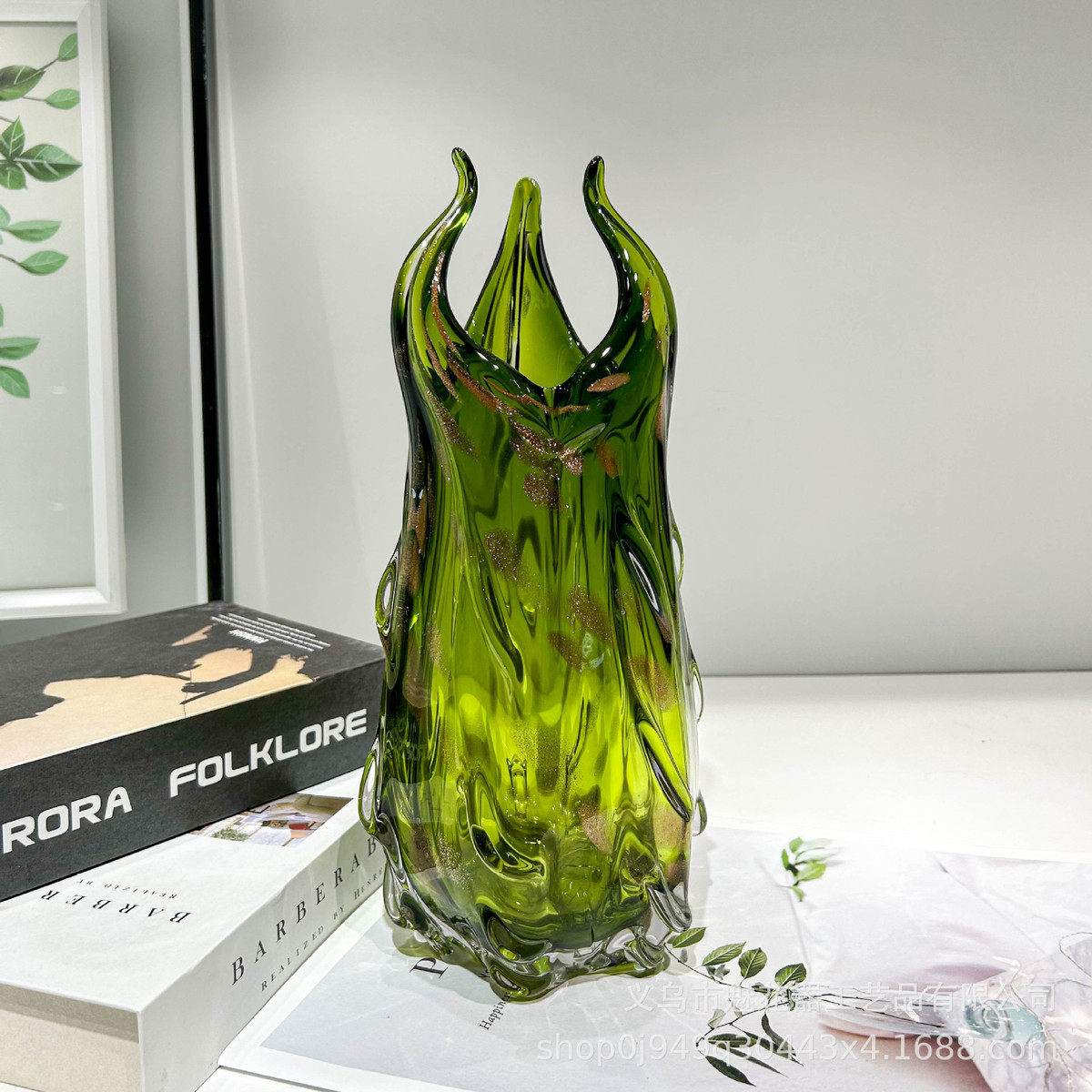 现代轻奢绿色异形琉璃花瓶艺术摆件样板间餐桌创意插花客厅面装饰