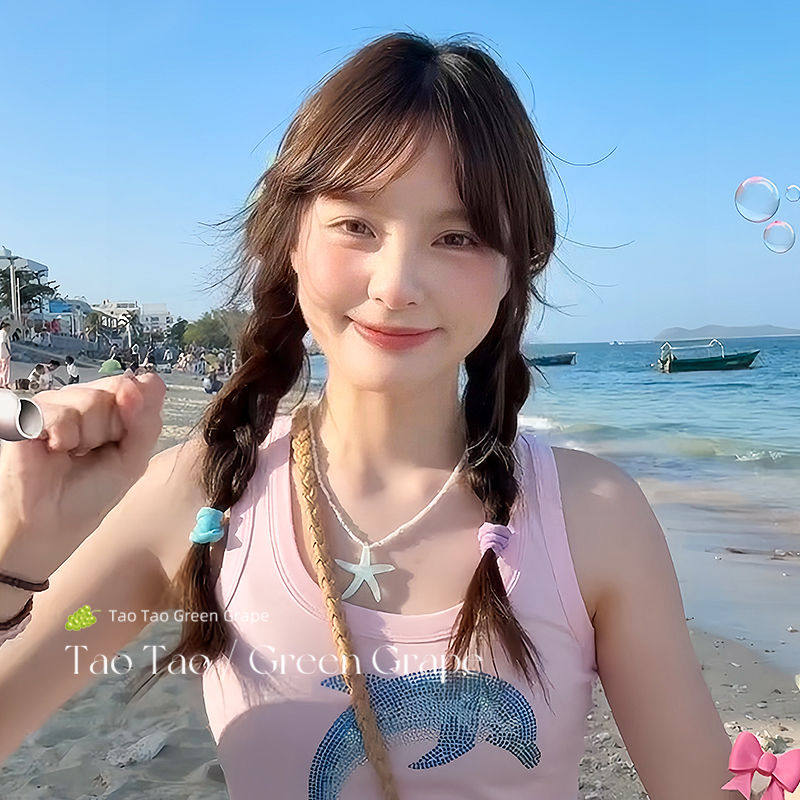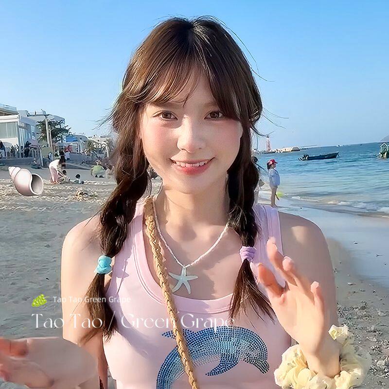 蓝色海星彩色多巴胺水晶串珠项链女夏海边锁骨链2025新款星星颈链