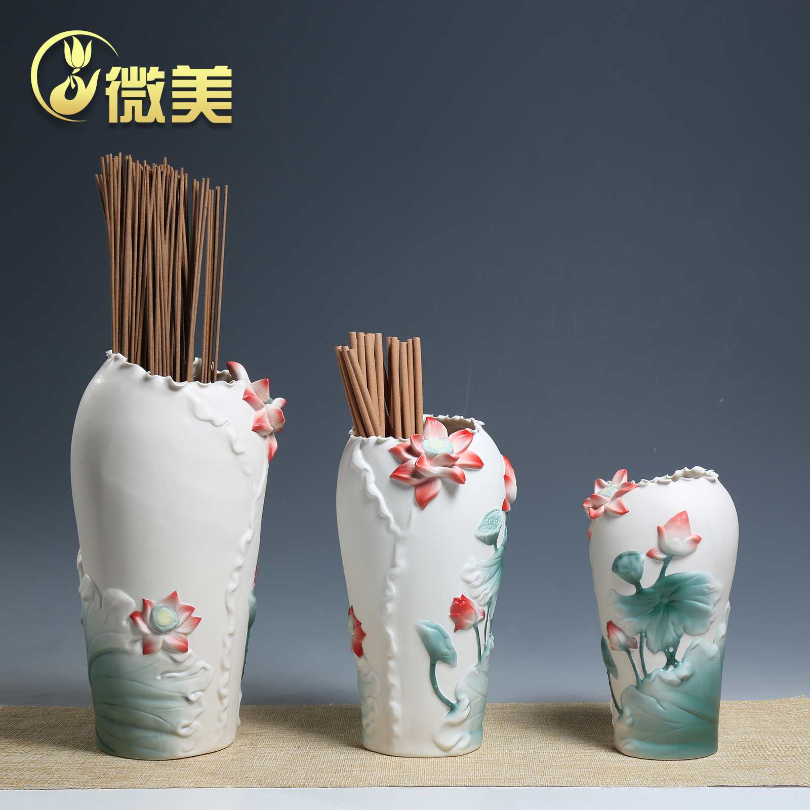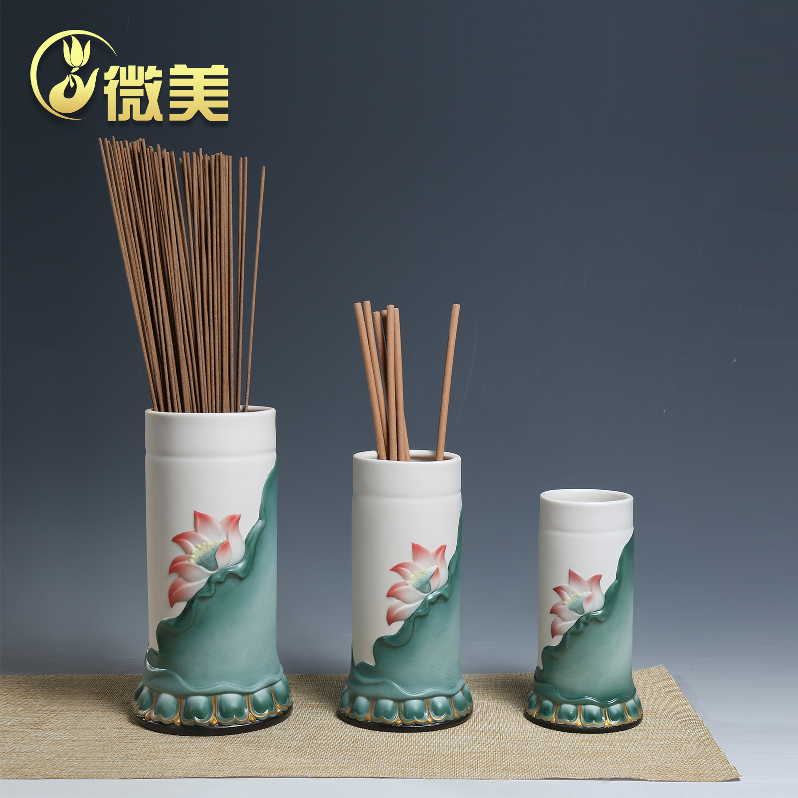 微美三尺寸香筒供佛花瓶白瓷中式装饰工艺插花佛前佛具用品