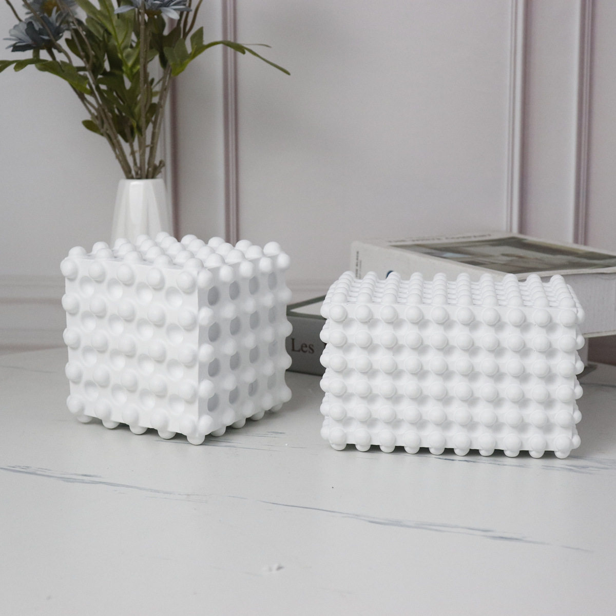 现代极简软装家居样板房售楼处A客厅玄关电视柜白色波点几何摆件