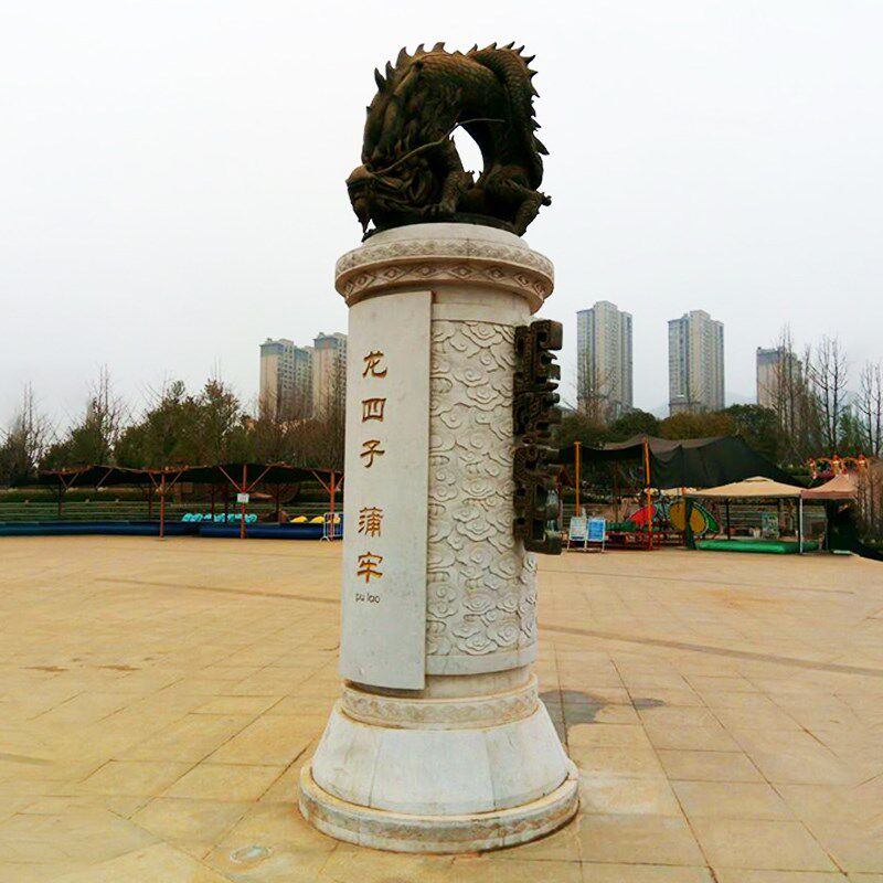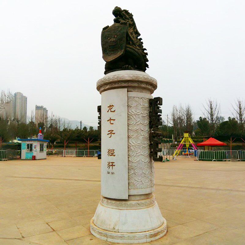 法治廉政主题f摆件铸铜龙九子古神兽大理石雕刻户外抽象石柱艺术