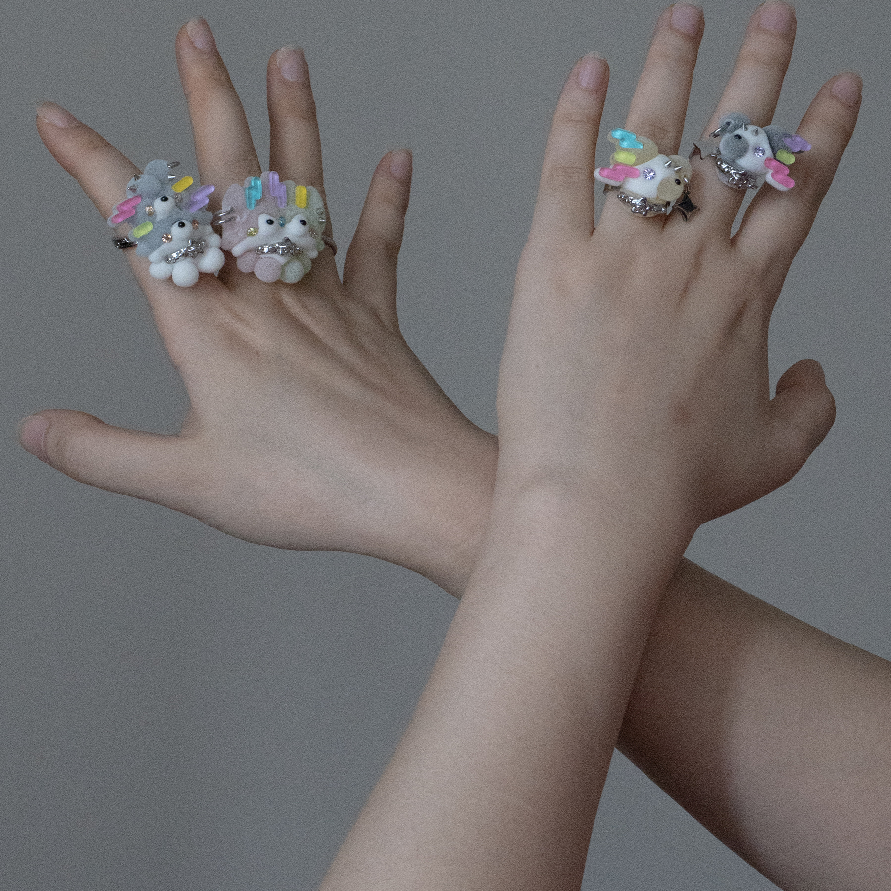 电子糖部[故障宠物]兔猫彩色梦境梦核戒指植绒毛绒古怪可爱小众
