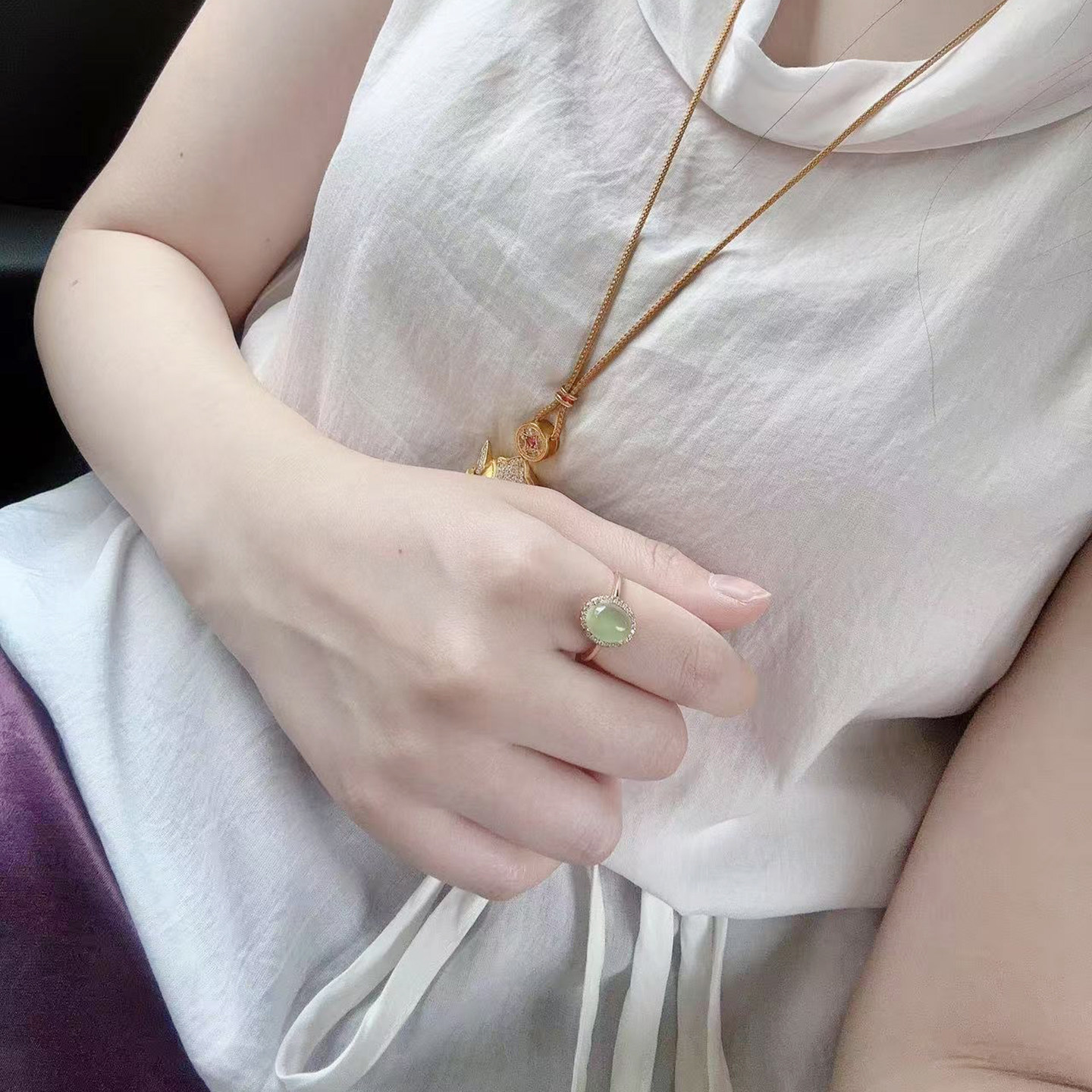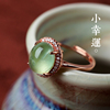 天然葡萄石戒指女冰种玉质绿翡翠色925银镀玫瑰金富贵绿色好幸运
