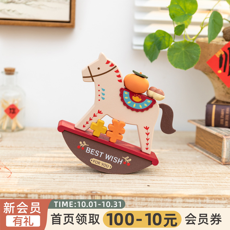 阿楹 儿童房客厅有趣可爱解压摇摇木马玩具摆件男女工位风水礼物