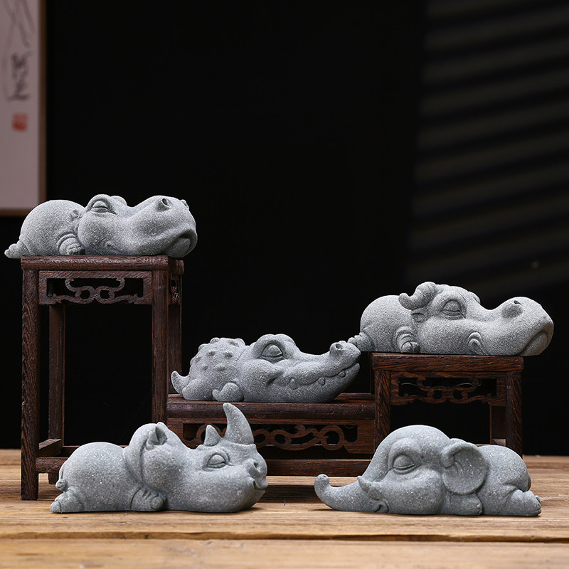 创意青砂石草原动物桌面摆件精品茶宠水族鱼缸盆栽微造景观装饰品