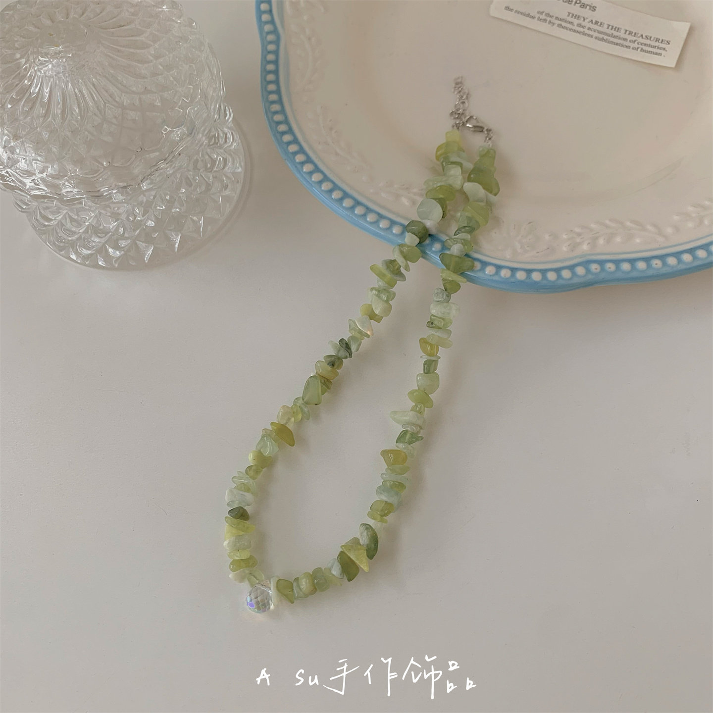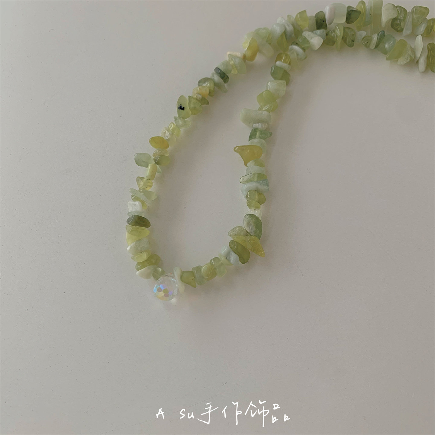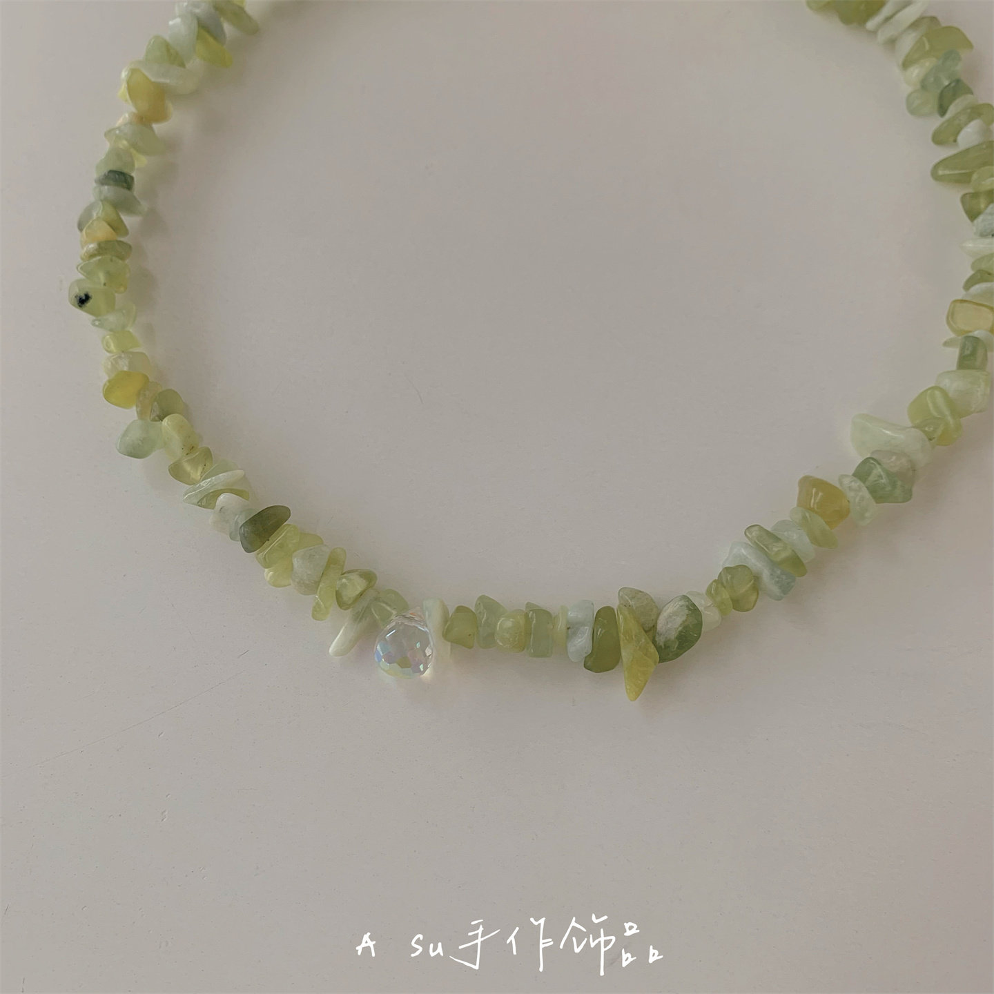 【Asu原创自制】天然绿色碎石水晶项链女锁骨链小众气质颈链