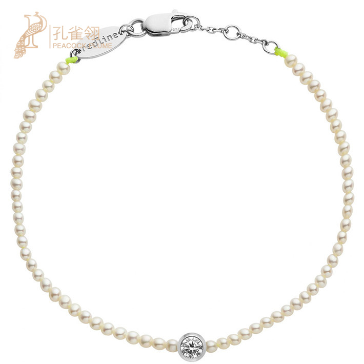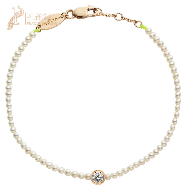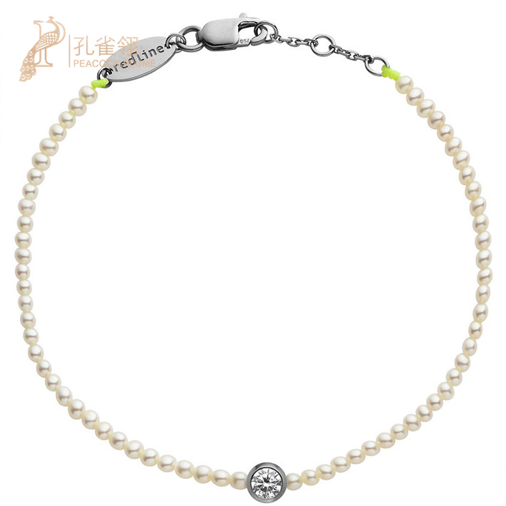 情人节redline红绳年女士配饰经典淡水小珍珠钻石螺纹手链