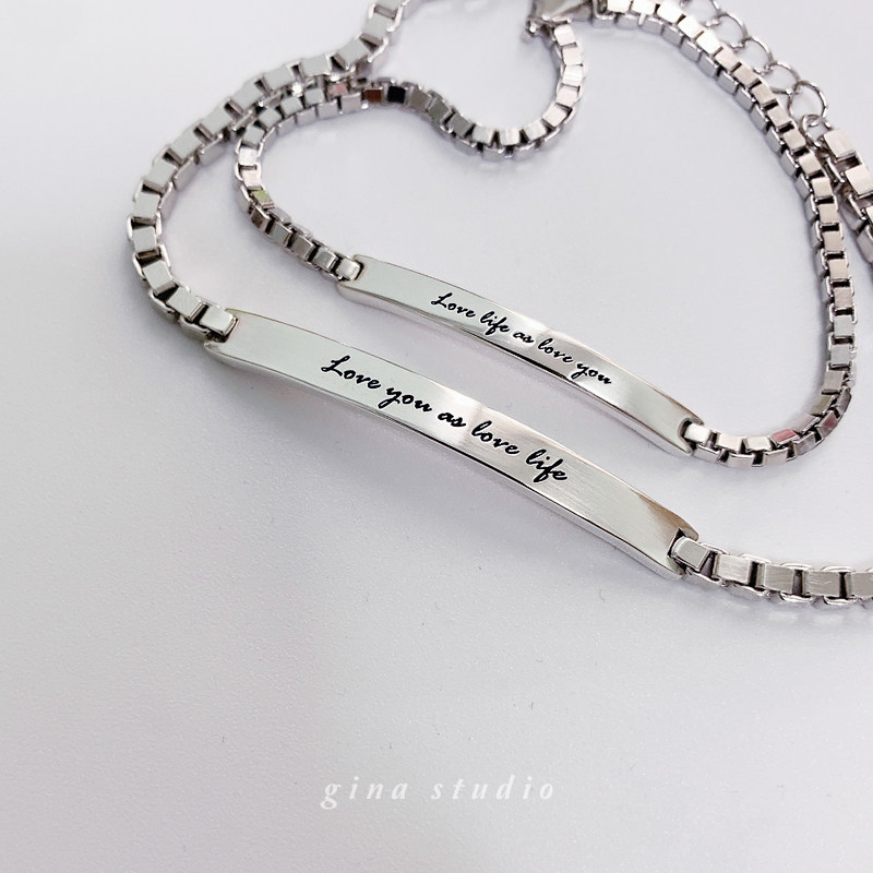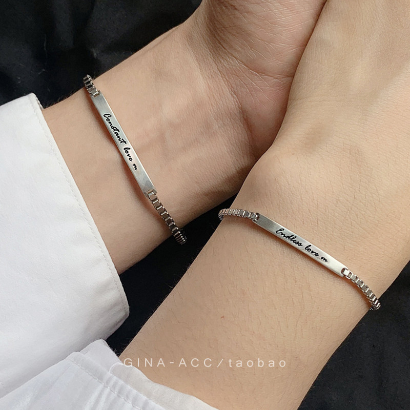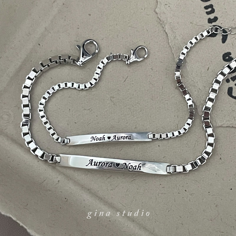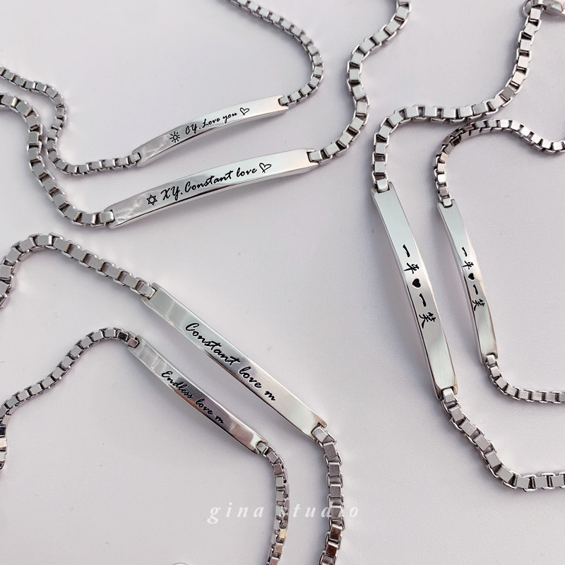 S925纯银DIY定制刻名字母长条情侣手链闺蜜女友情人节生日礼物