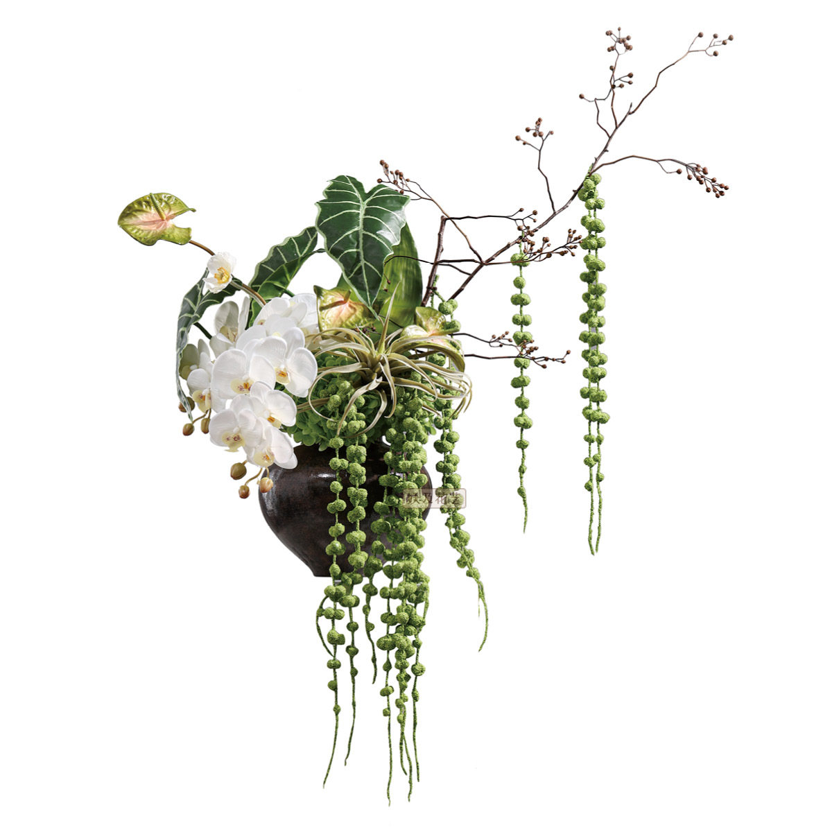 妖及 现代绿色系仿真花花器装饰品 样板间酒店前台餐桌桌面摆件