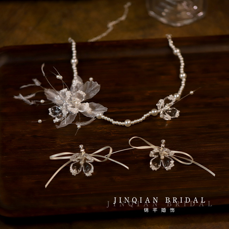 超仙凝胶花朵新娘项链耳环耳夹耳饰结婚纱晚礼服晨袍森系甜美配饰