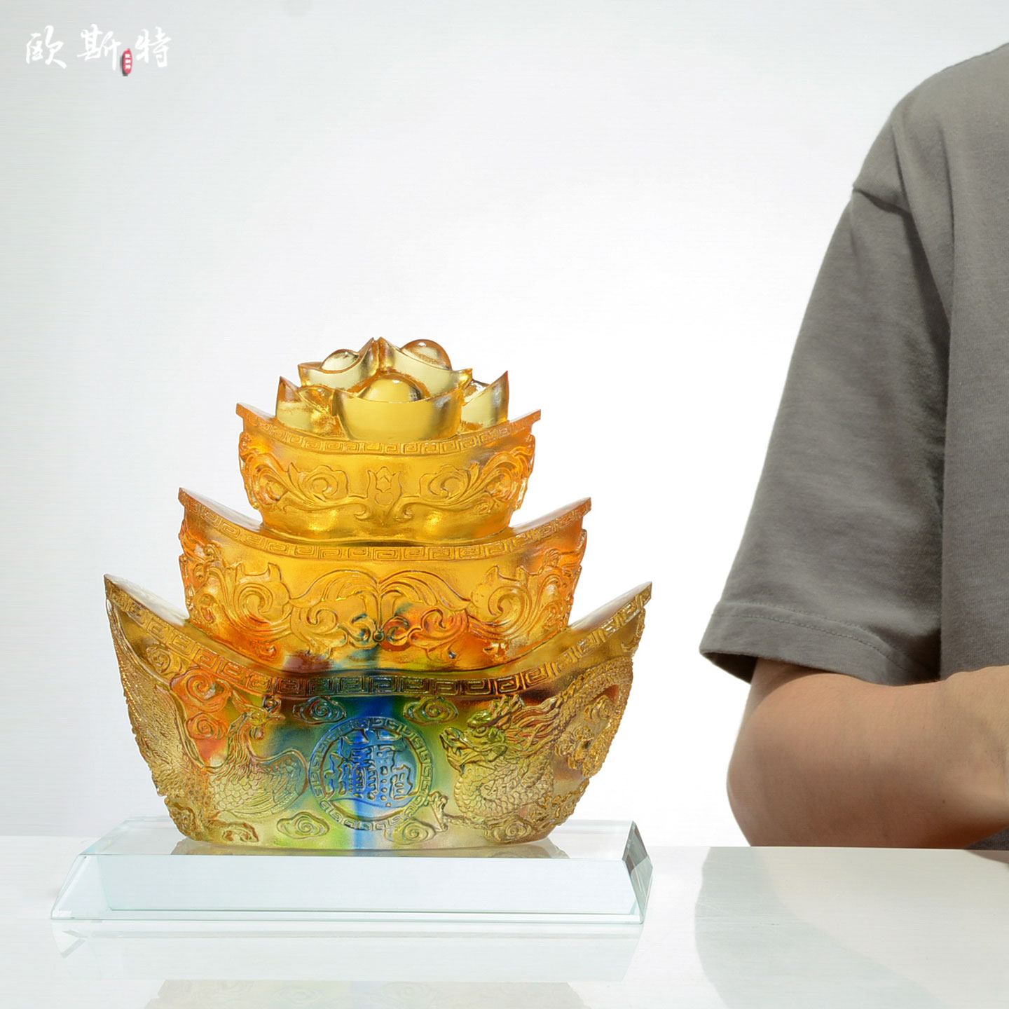 欧斯特琉璃黄金万两元宝摆件家居客厅办公室装饰品乔迁开业礼品
