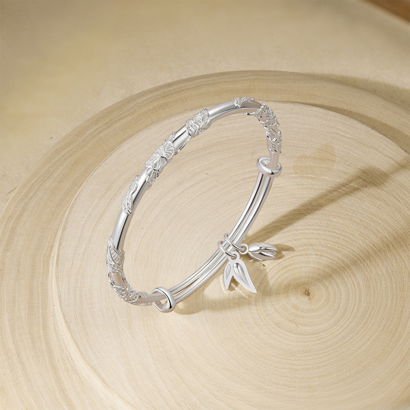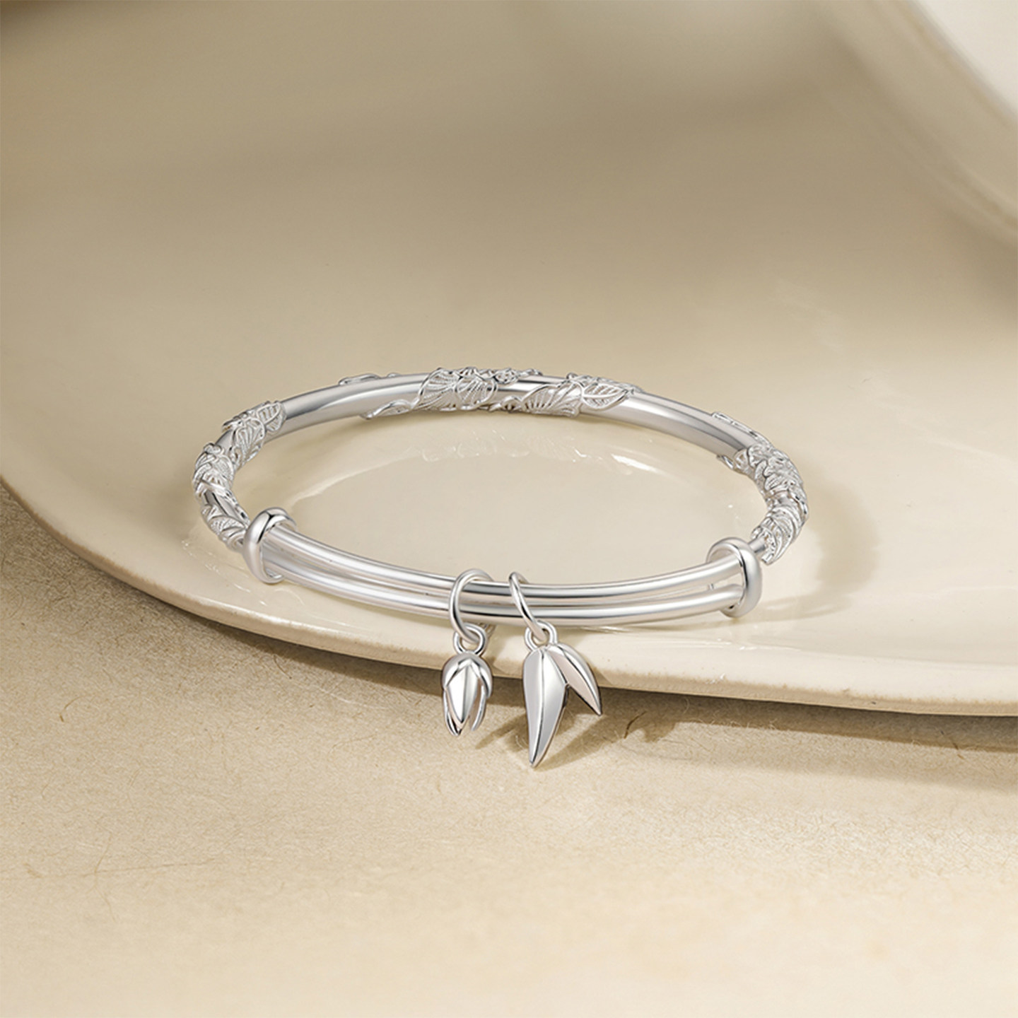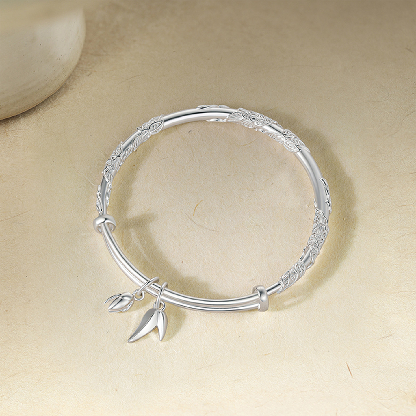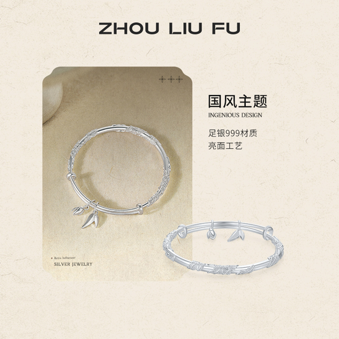 周六福繁花似锦手镯女S999银实心镯子优雅气质送女友节日礼物