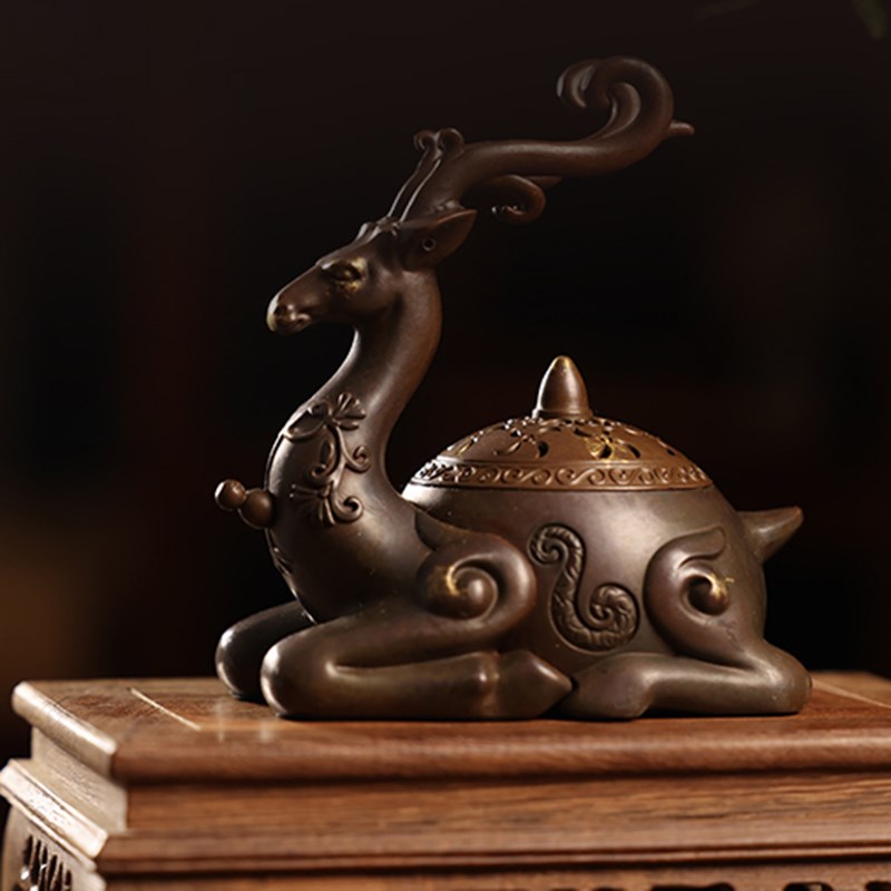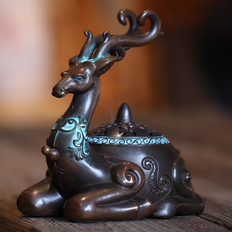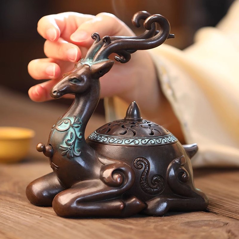 香炉摆件纯e铜香薰炉中式家用客厅檀香熏香炉仿古铜鹿茶室禅意饰