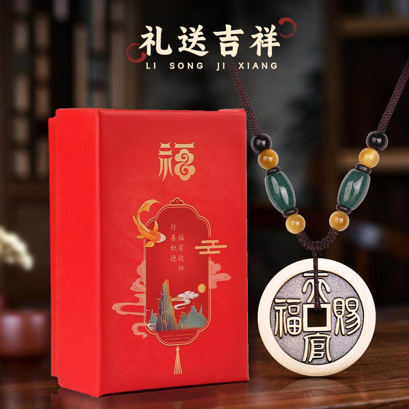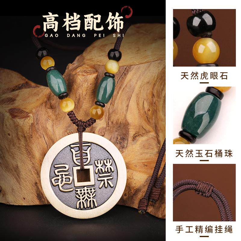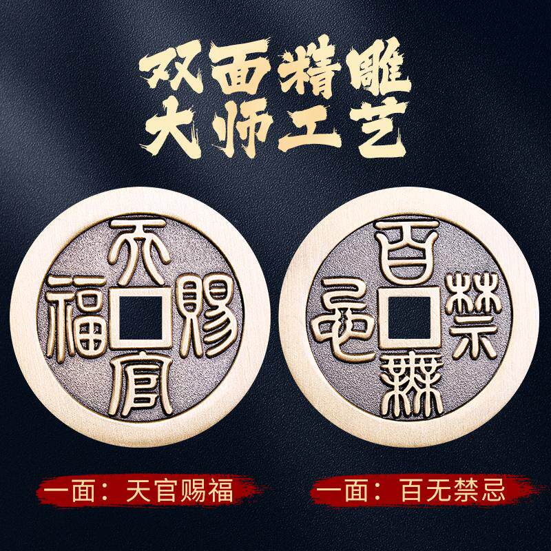 道家天官赐福百无禁忌铜钱吊坠黄铜厌胜花钱转男好运护身平安挂件