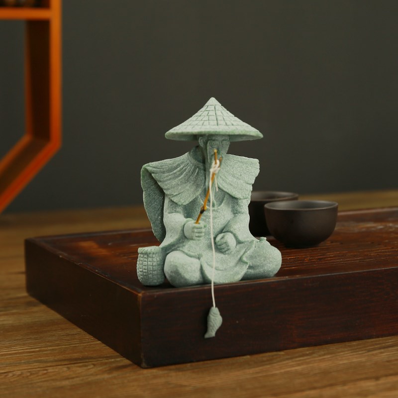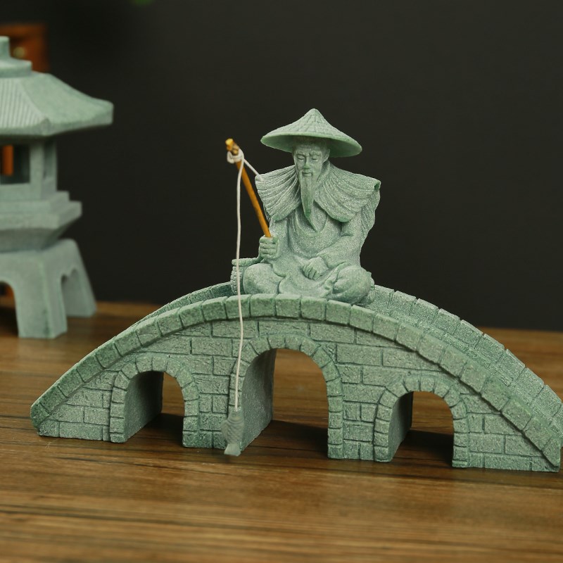 姜太公钓鱼青砂石摆件水族微景观装饰品鱼缸造景假山盆景迷你摆设