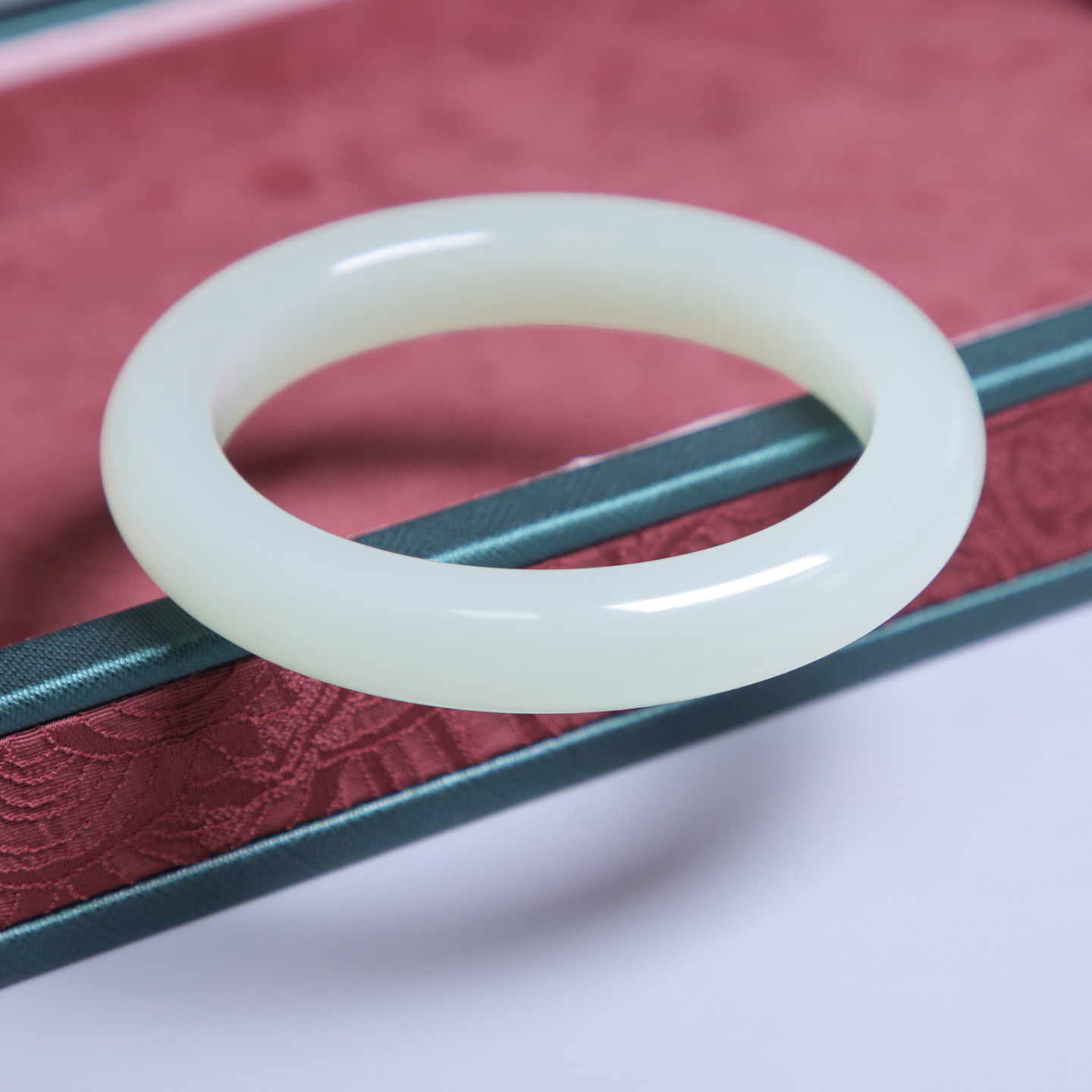 珪宝58mm和田玉高冰晴水宽条手镯女款青白玉镯子天然玉石礼物1573