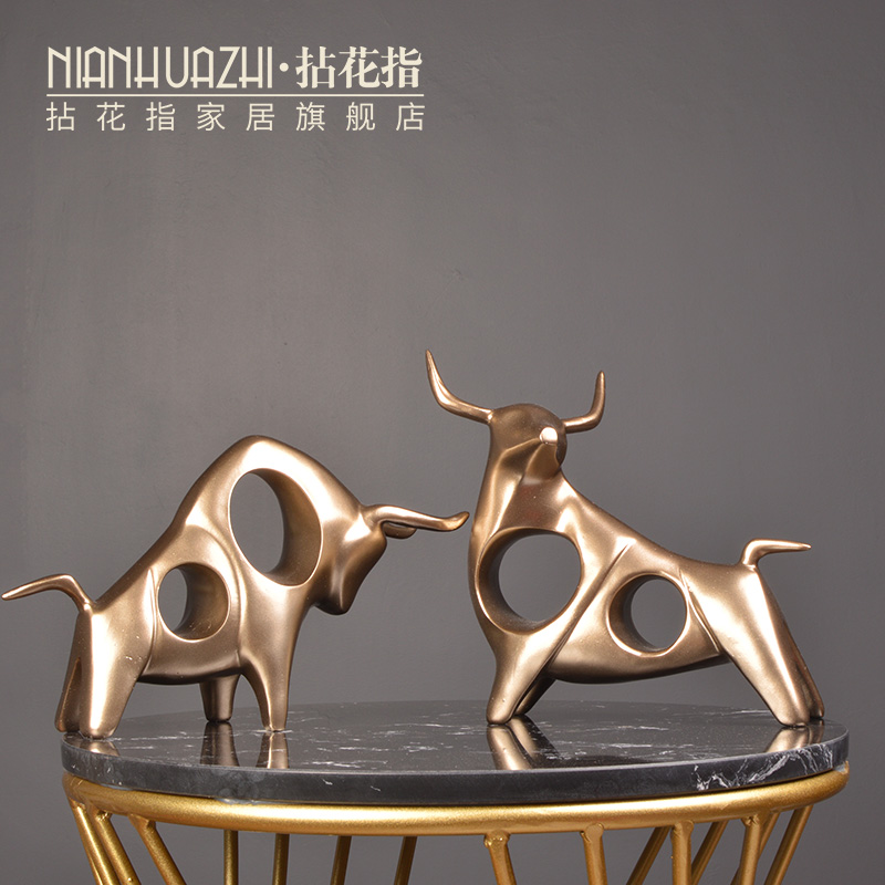 现代简约高档牛小摆件玄关客厅书柜办公室桌面家居酒柜创意装饰品
