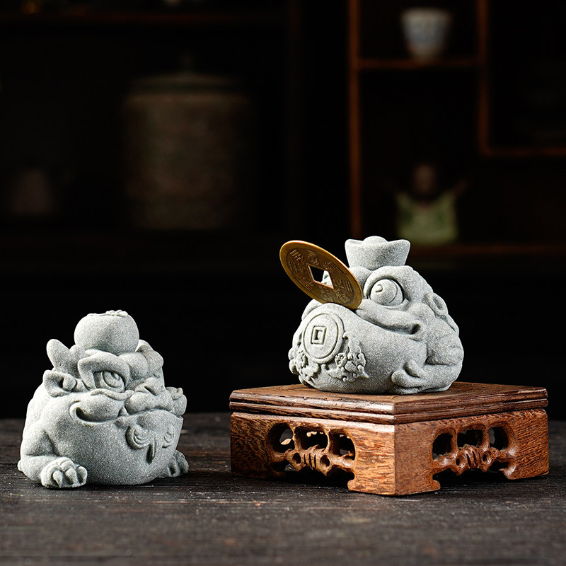 创意金蟾献瑞茶宠茶玩中式三足招财小金蟾鱼缸造景桌面装饰品