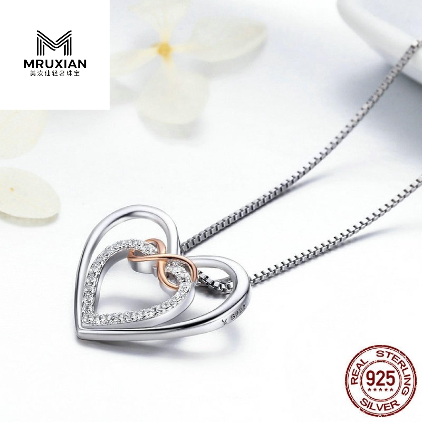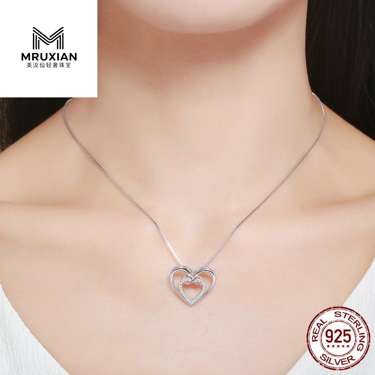 MRUXIAN 精致的心纯银心形镶锆石项链轻奢高级感原创设计师绝美