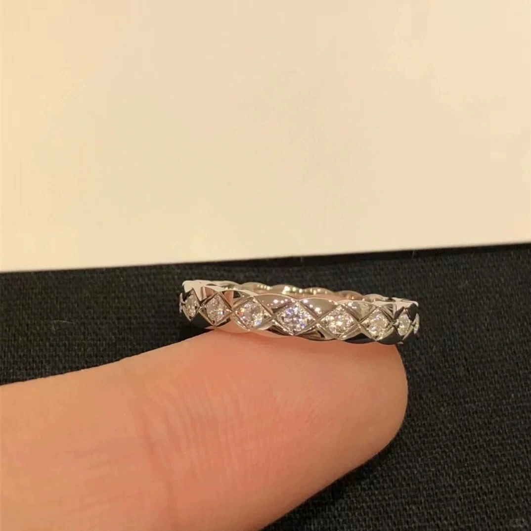 Young小香风菱格纹叠戴戒指轻奢简约百搭条戒排戒镶满钻甜酷女戒