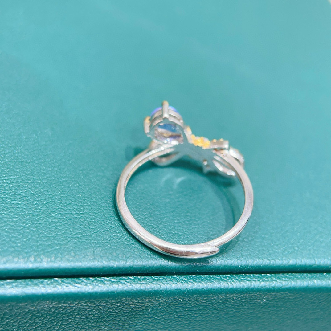 捡漏水晶天然坦桑石戒指女经典四爪款简约时尚蓝色水晶女友礼物