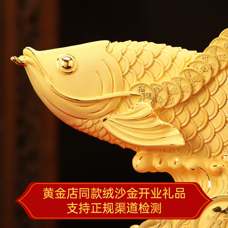 年年有余招财金龙鱼摆件绒沙金客厅玄关办公室装饰品公司开业礼物
