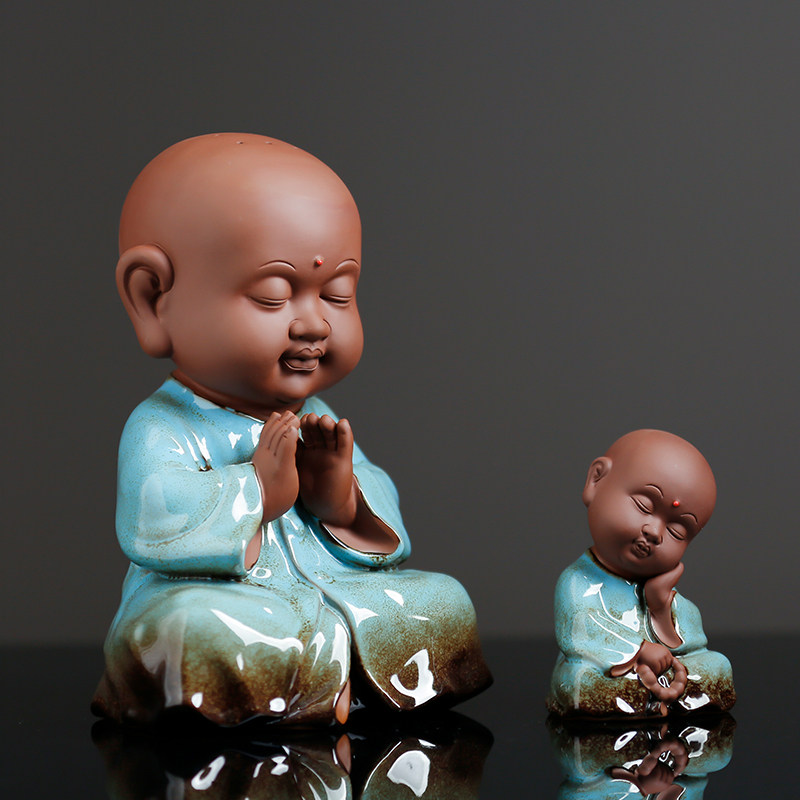 可爱小沙弥摆件禅意小和尚博古架酒柜装饰品陶瓷创意办公室桌摆设