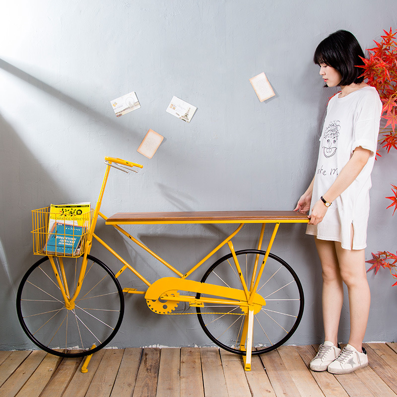 彩色自行车桌子落地摆件美式复古咖啡店铺馆橱窗陈列品酒吧装饰桌