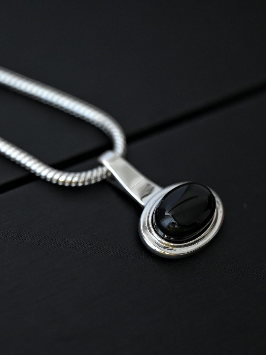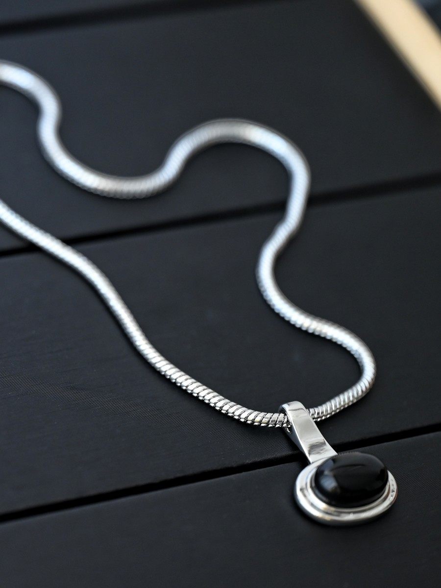 简约时尚黑色玛瑙银色锁骨链欧美小众设计感个性中性情侣潮流项链