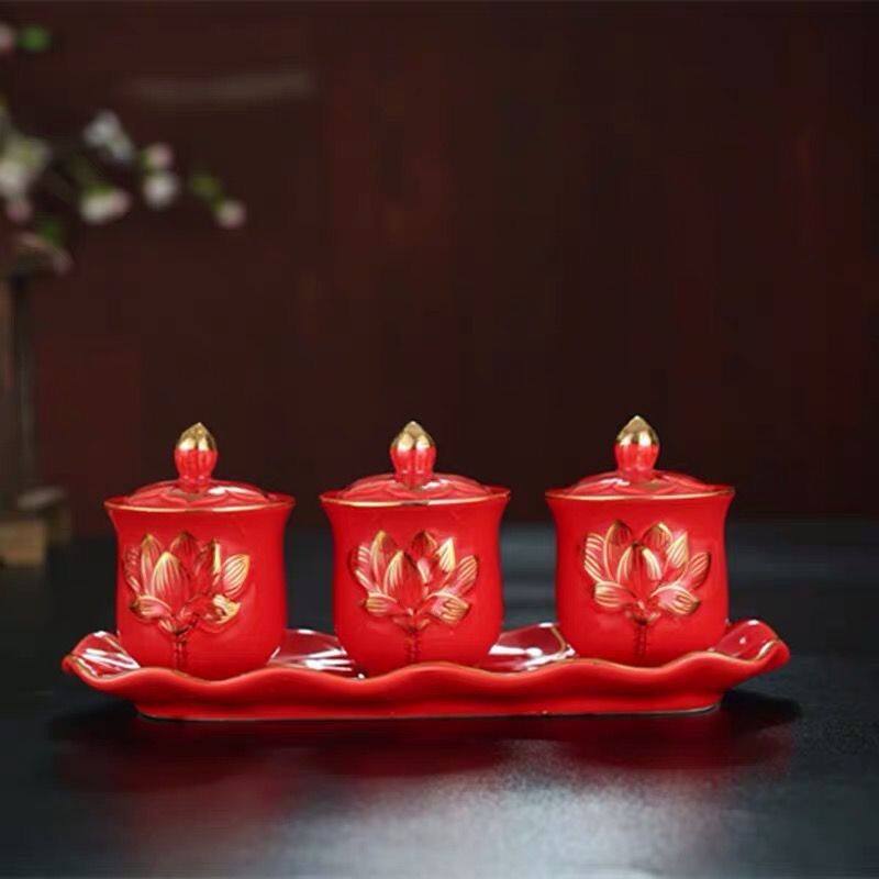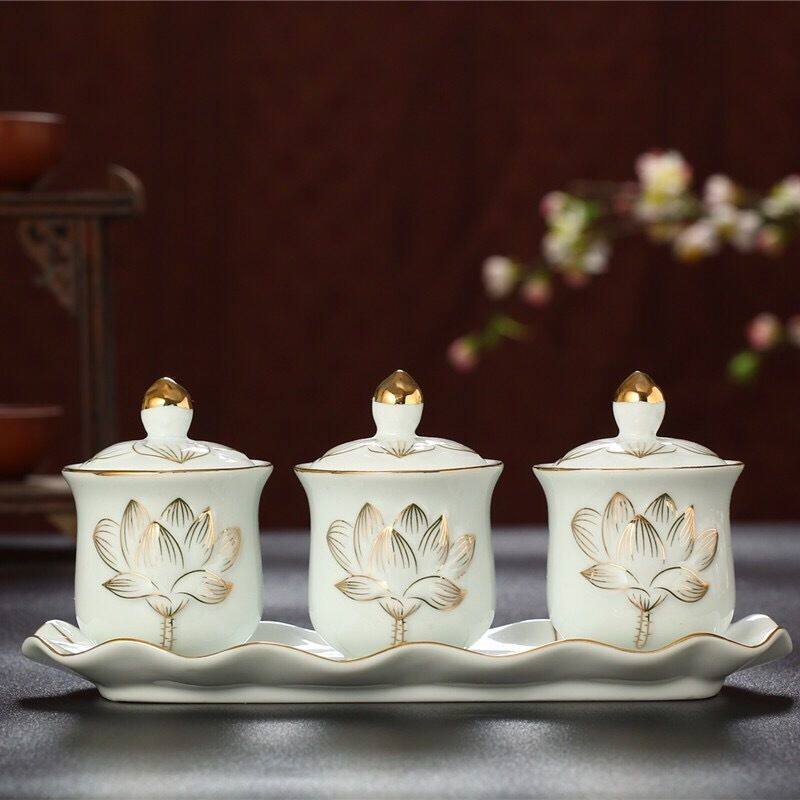 仙用水杯陶瓷套装白色莲花杯供水杯用具净水杯白瓷财神供佛水杯