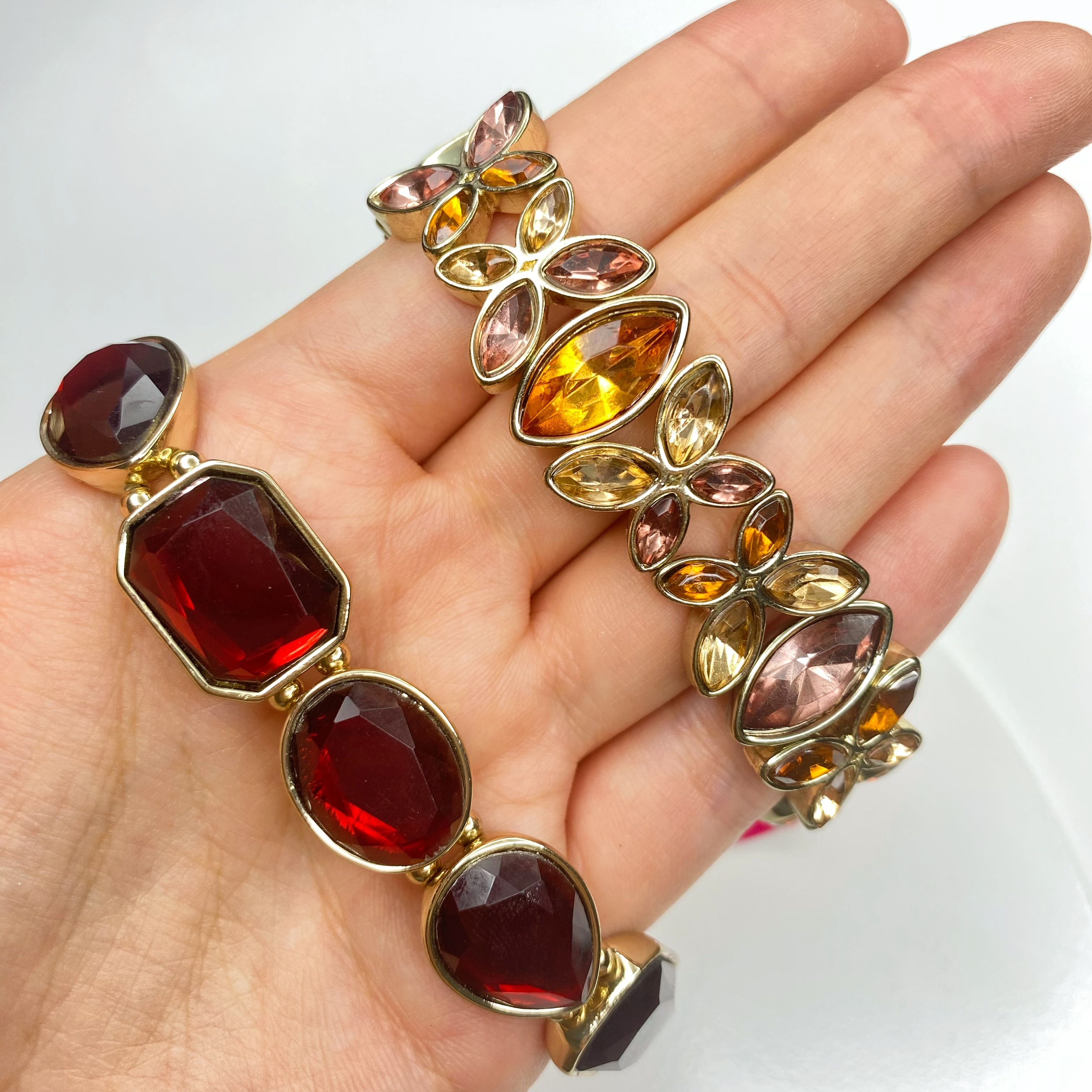 中古外贸复古宫廷风手镯手链设计感欧美ins风琉璃钻弹力绳款