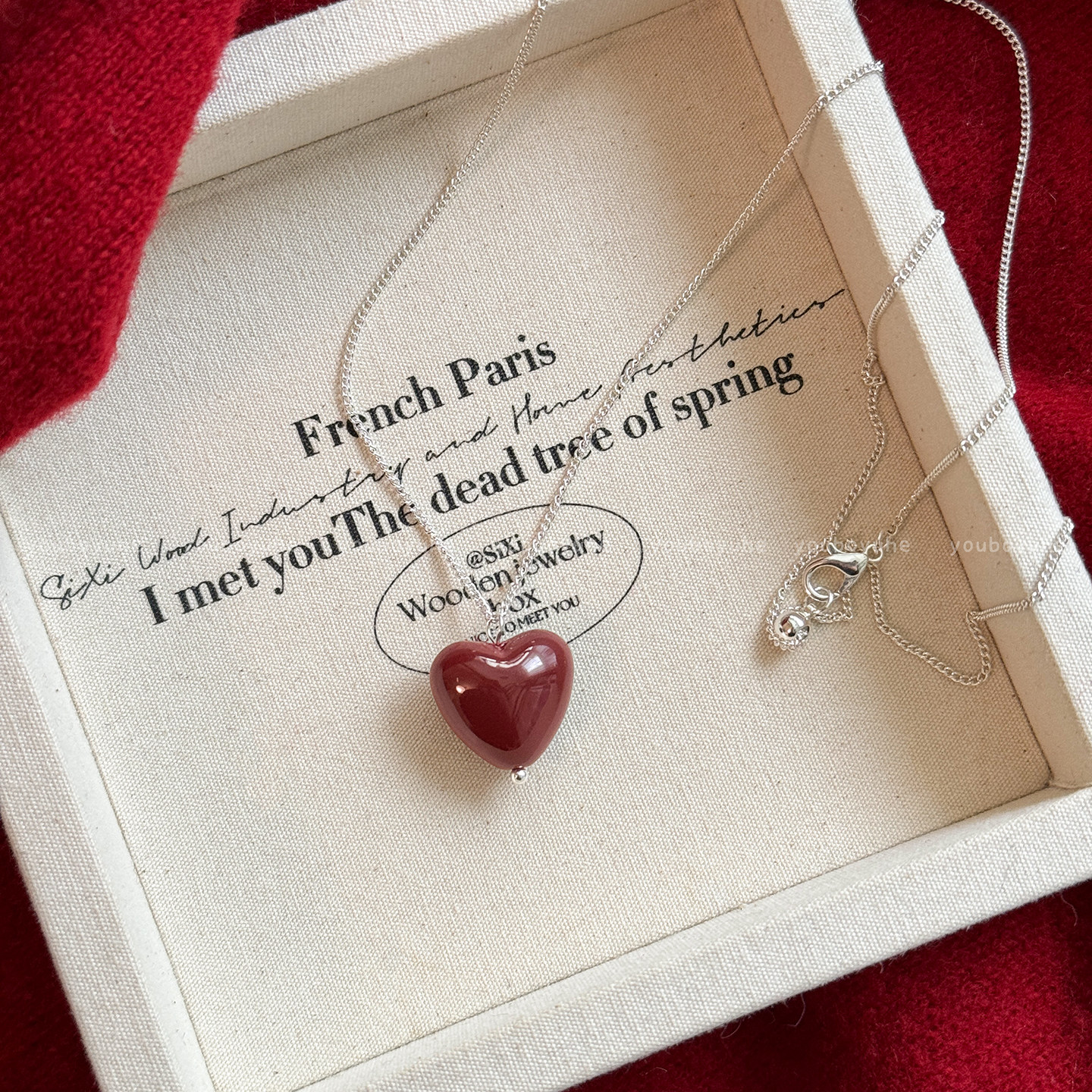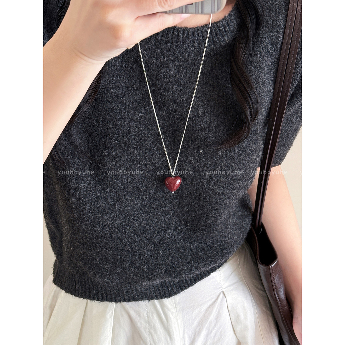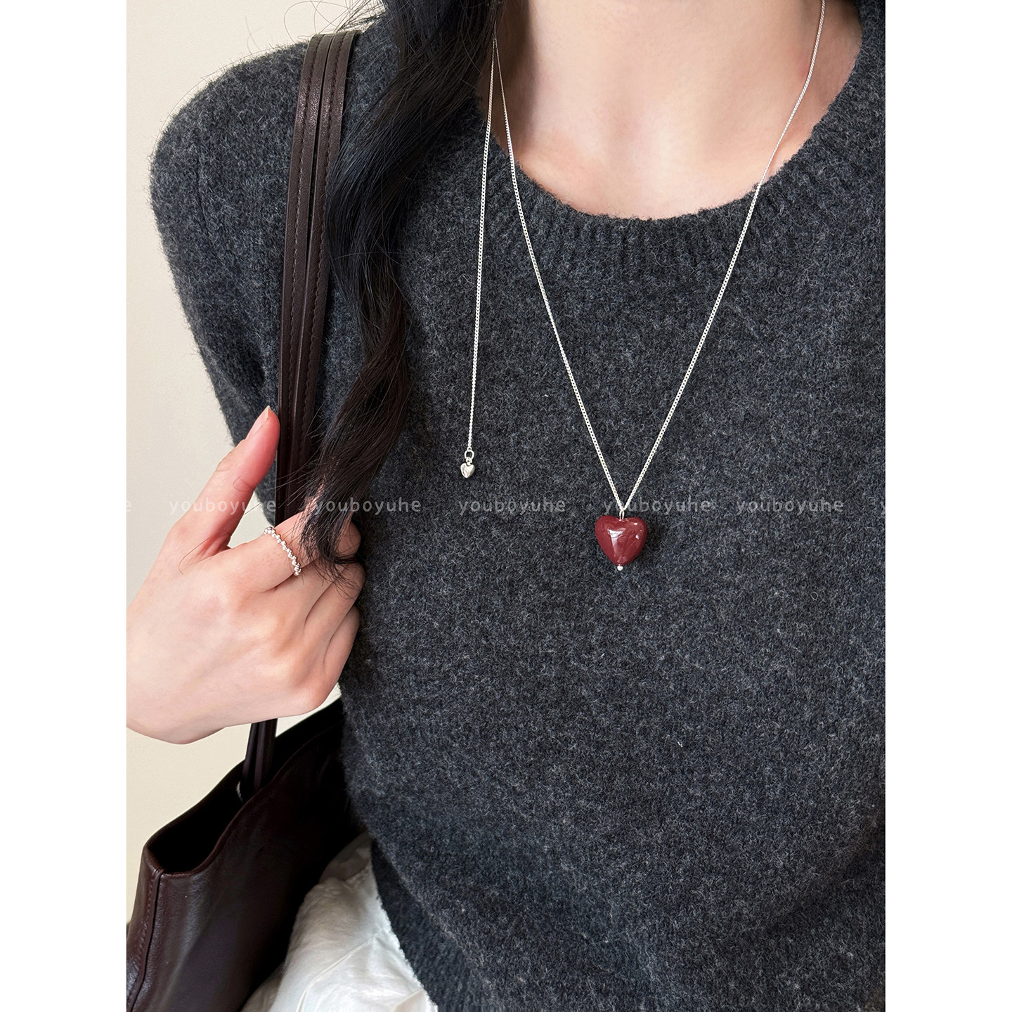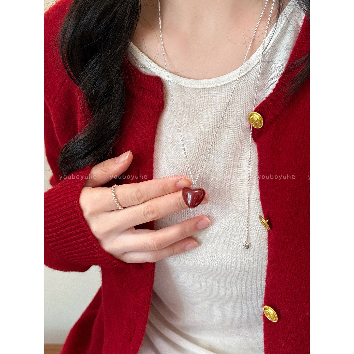简约红色滴釉爱心项链女高级感2026新款毛衣链小众设计挂脖配饰品