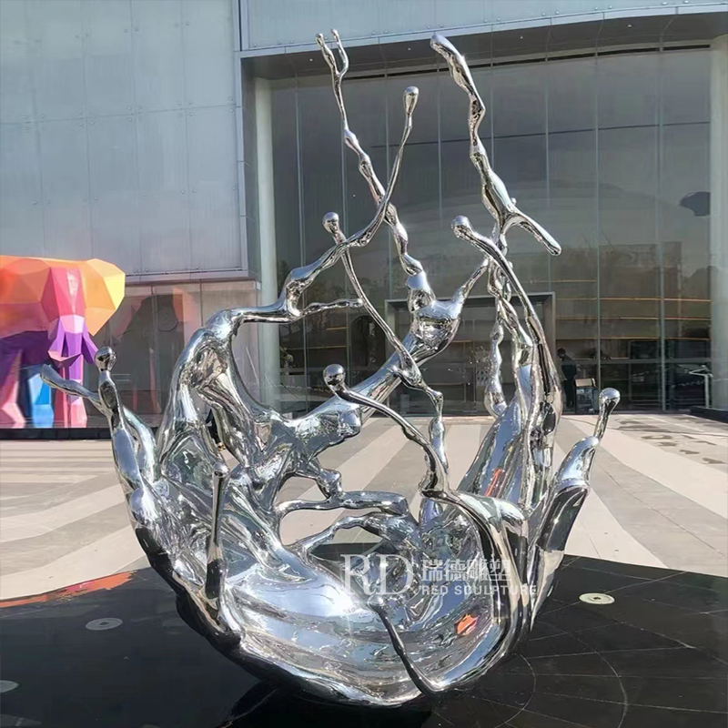 不锈钢镜面水浪花雕塑定制大型房地产水池金属水滴水波纹装饰摆件