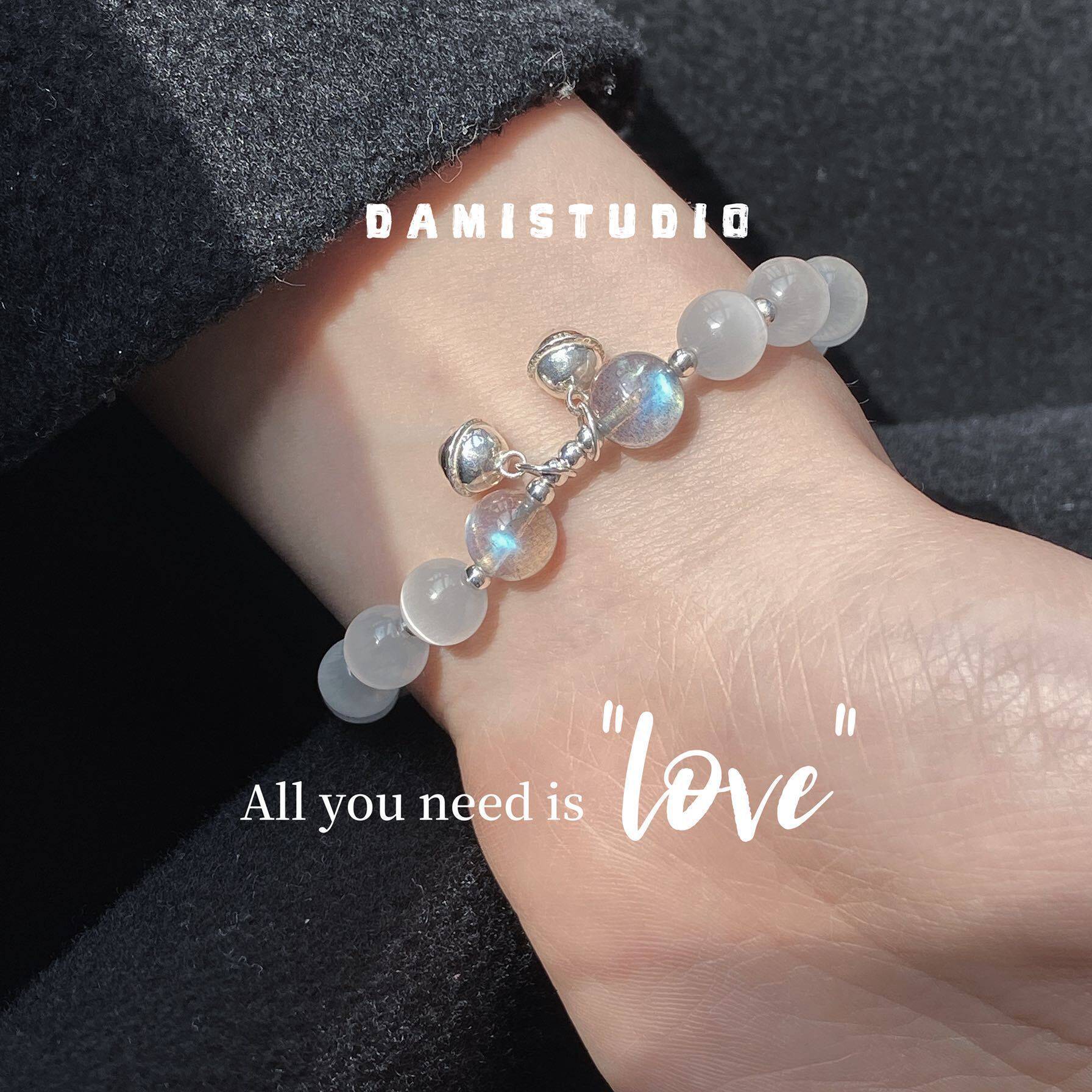 月光石猫眼石镀银铃铛手链女闺蜜生日礼物手作