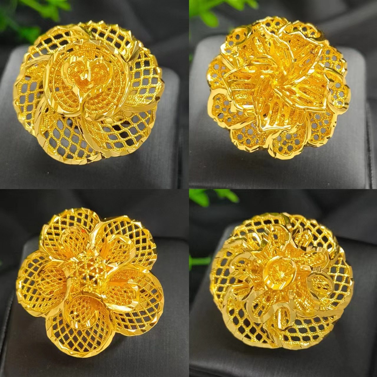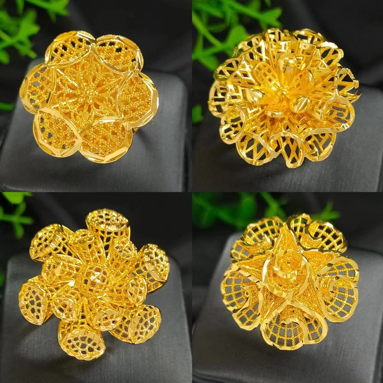 黄金色沙金金镂空花朵戒指女印度非洲欧美婚礼 jewelry跨境指环