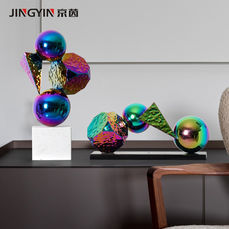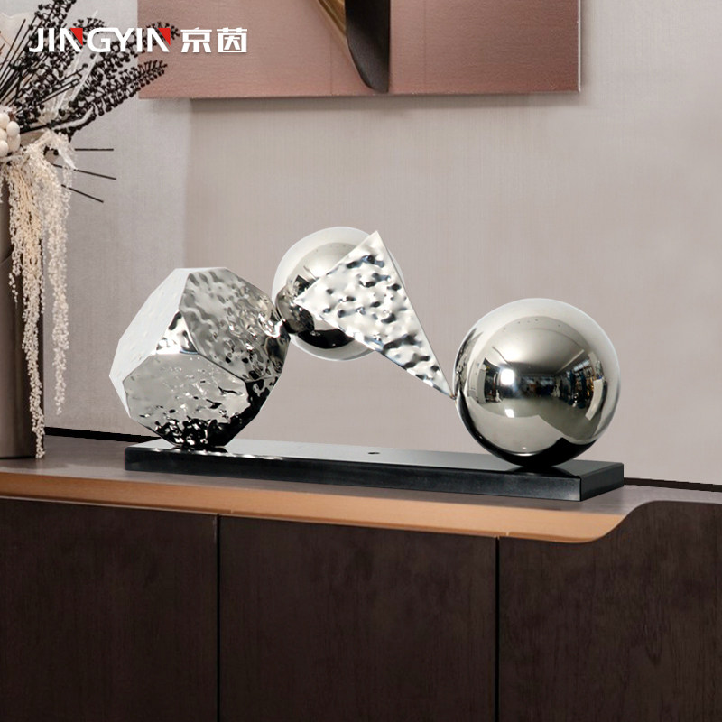 入户玄关不锈钢落地雕塑样板房酒店软装设计装置艺术品电视柜摆件