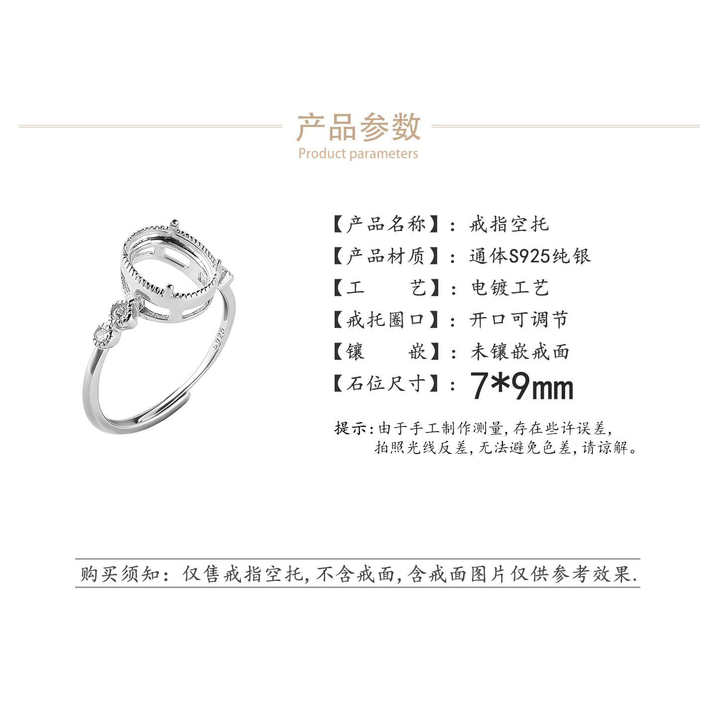 S925纯银戒指空托蛋形椭圆形小众设计女款镶嵌翡翠绿松石戒托 7*9