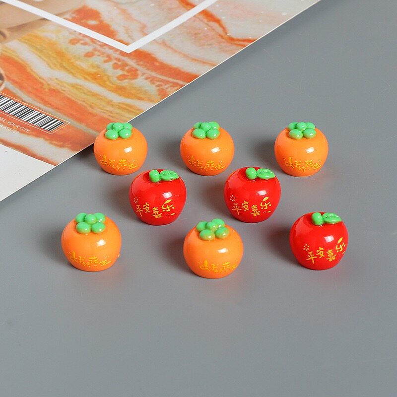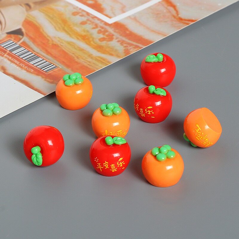 亮面仿真微缩平安果柿子创意电脑桌面车载水果食玩树脂装饰小摆件