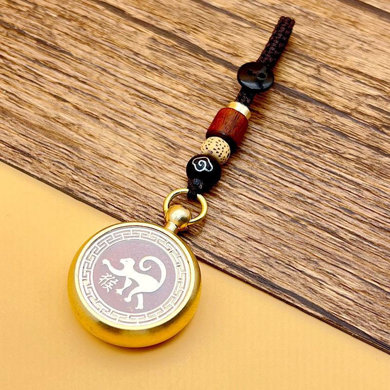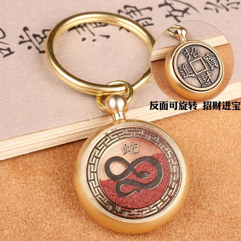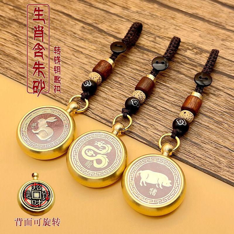 本命年钥匙扣黄铜朱砂手把件招财进宝汽车钥匙链挂件吊坠
